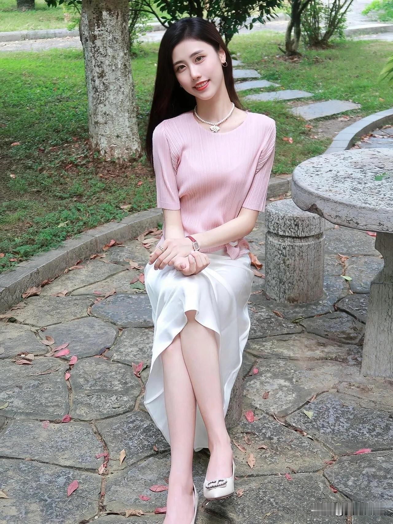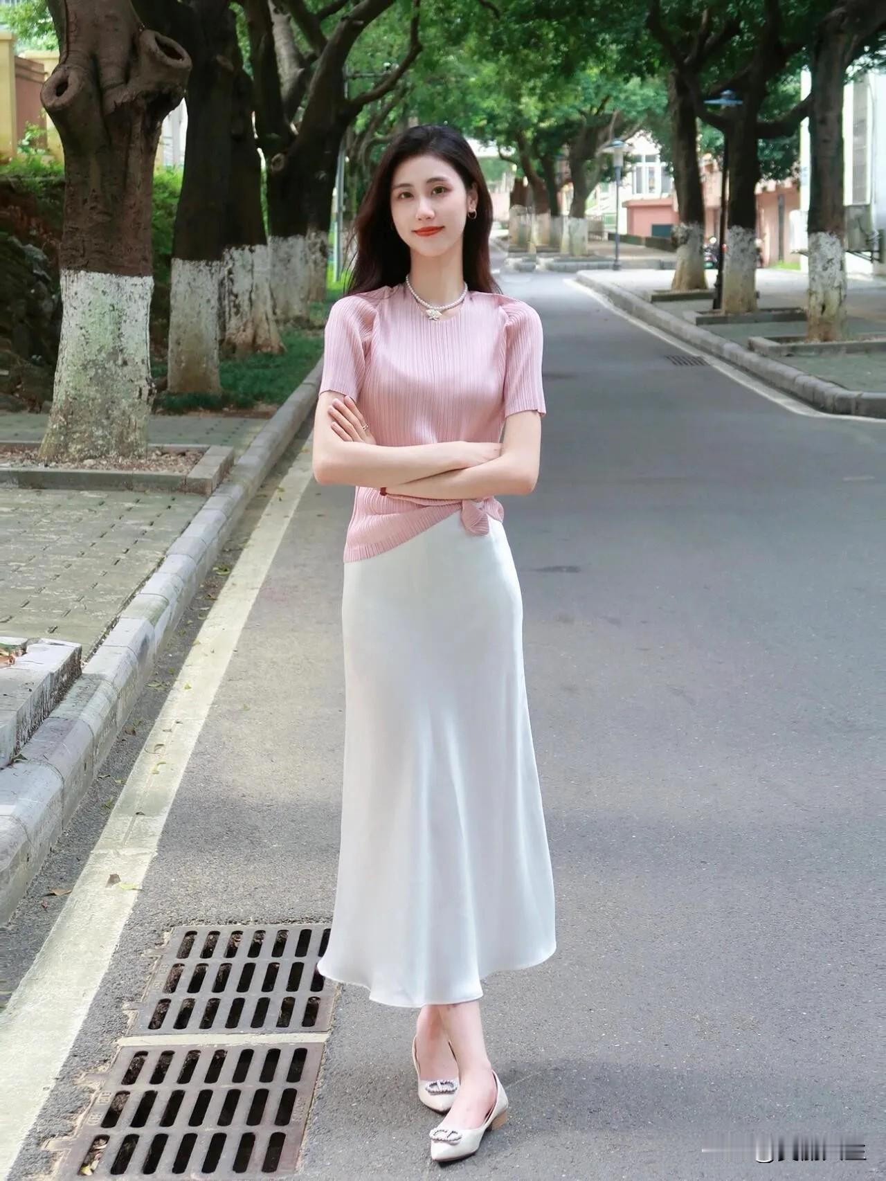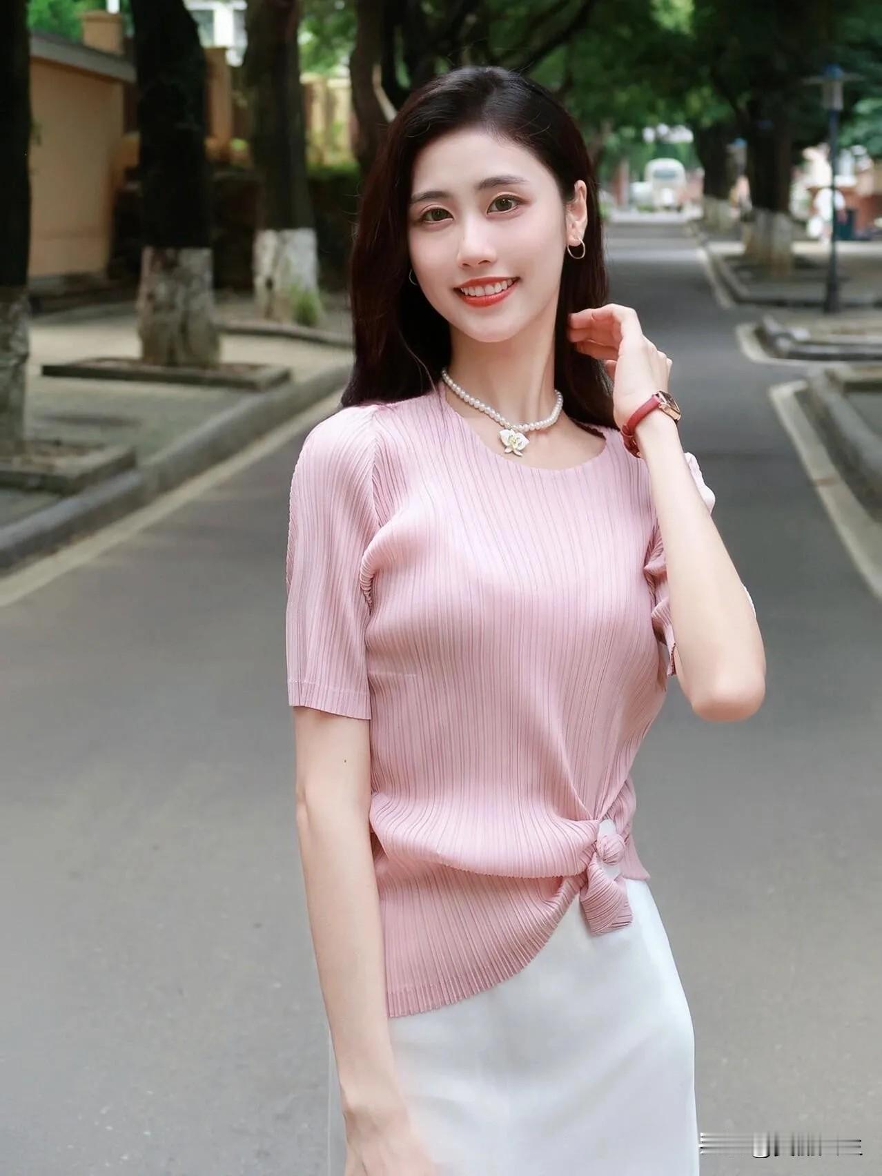 温柔粉裙,甜美笑容,元气满满的一天!🌸💖