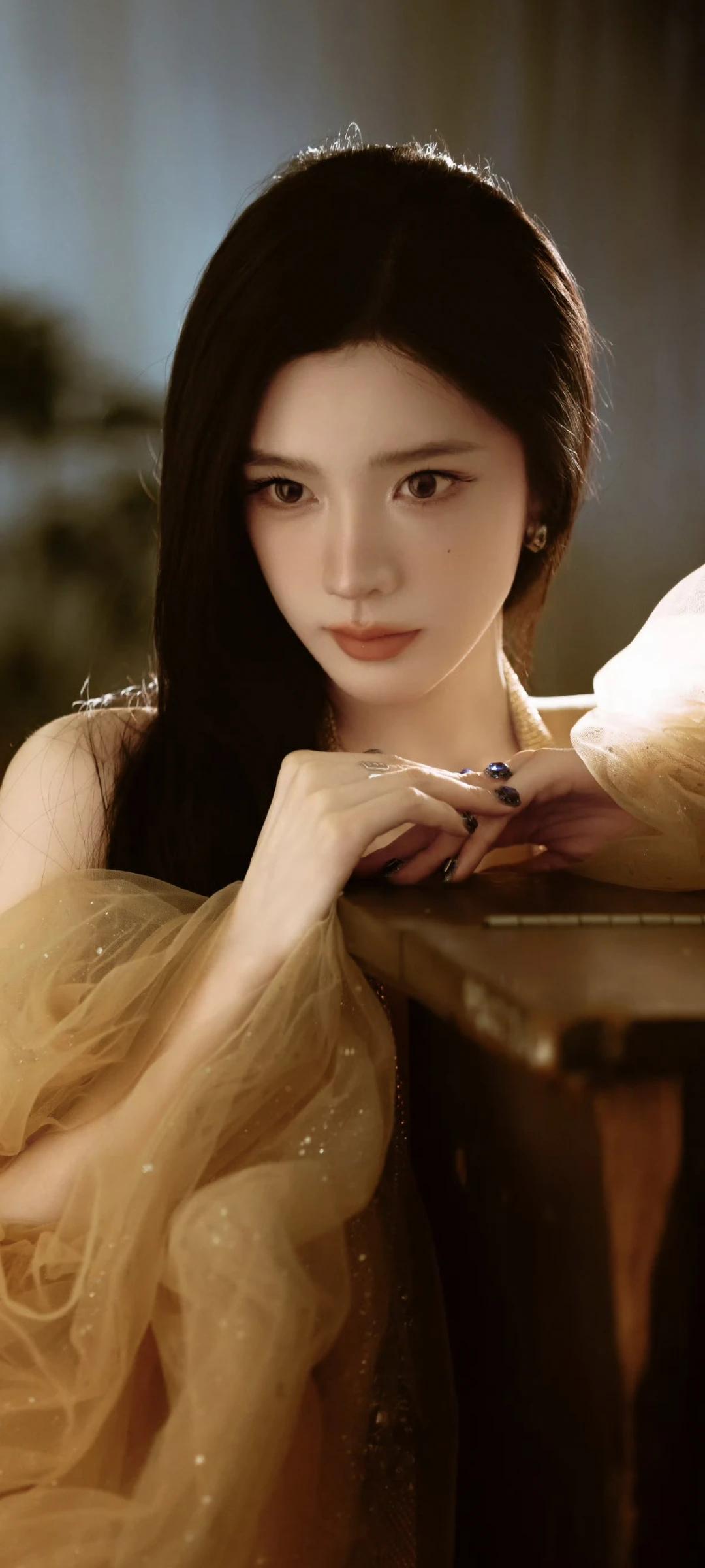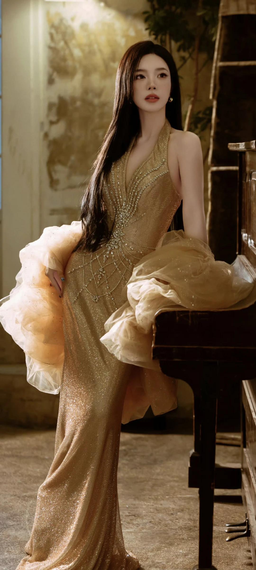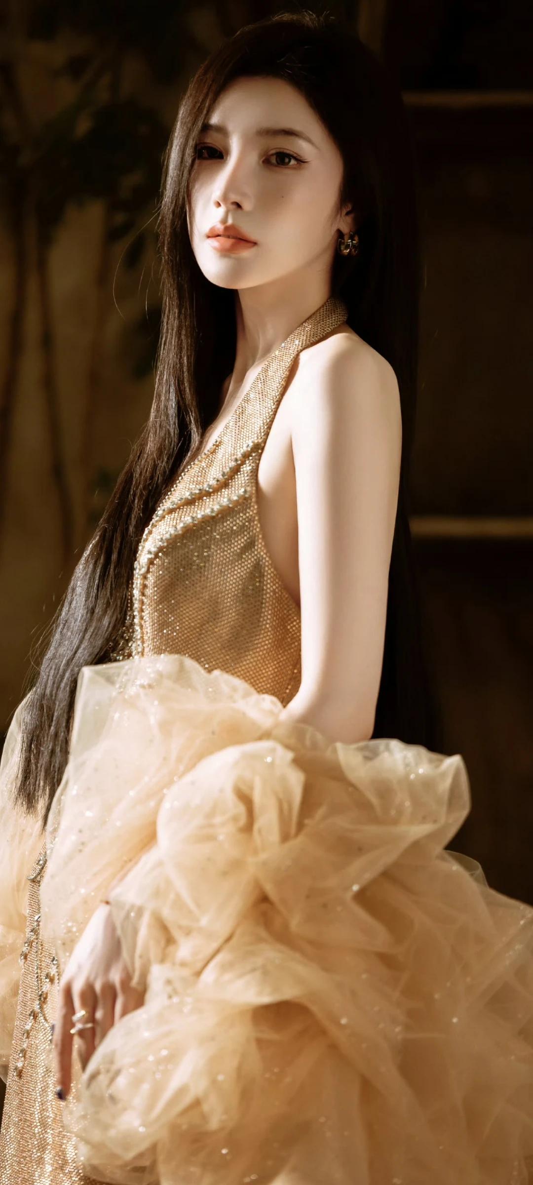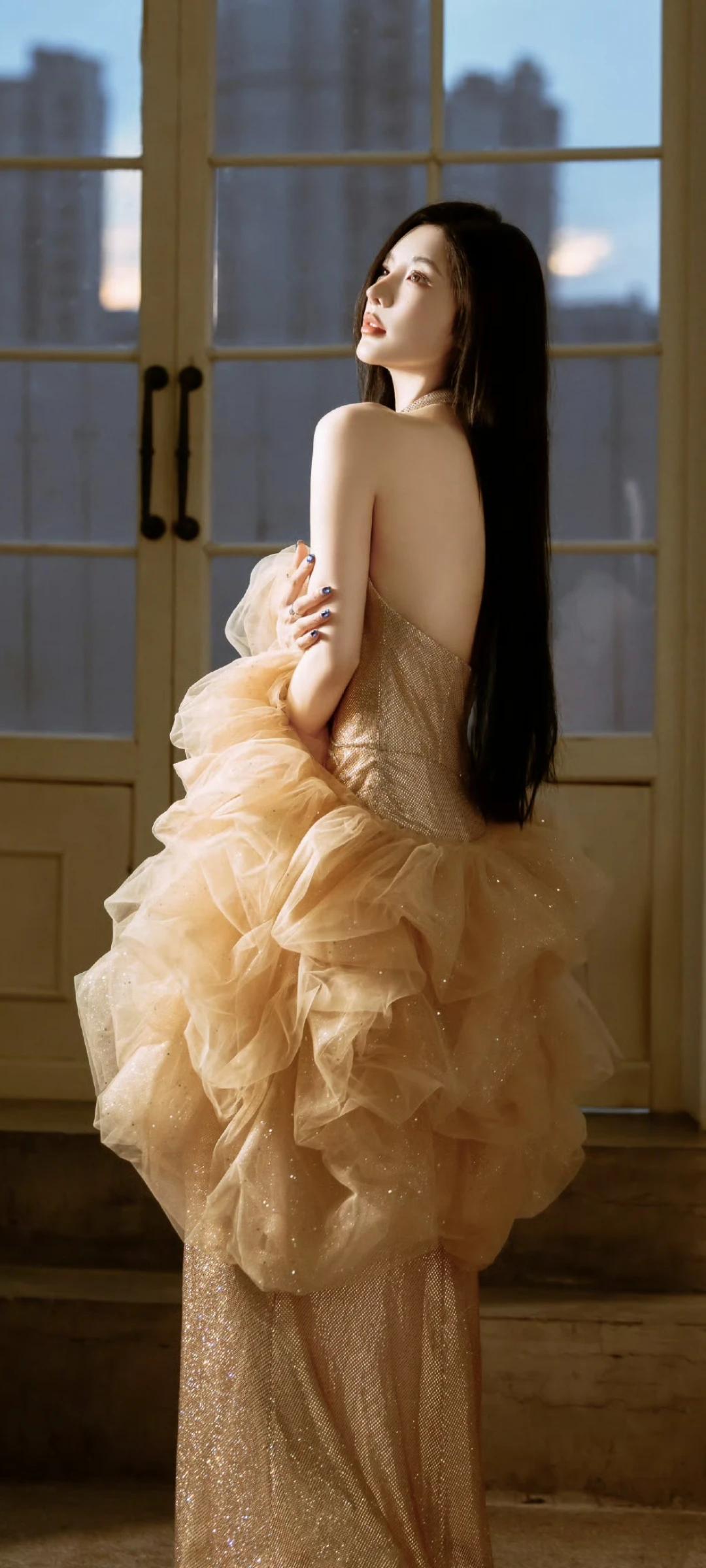 戴燕妮写真壁纸~鎏金礼服勾勒出的曼妙曲线,每一寸都在发光!