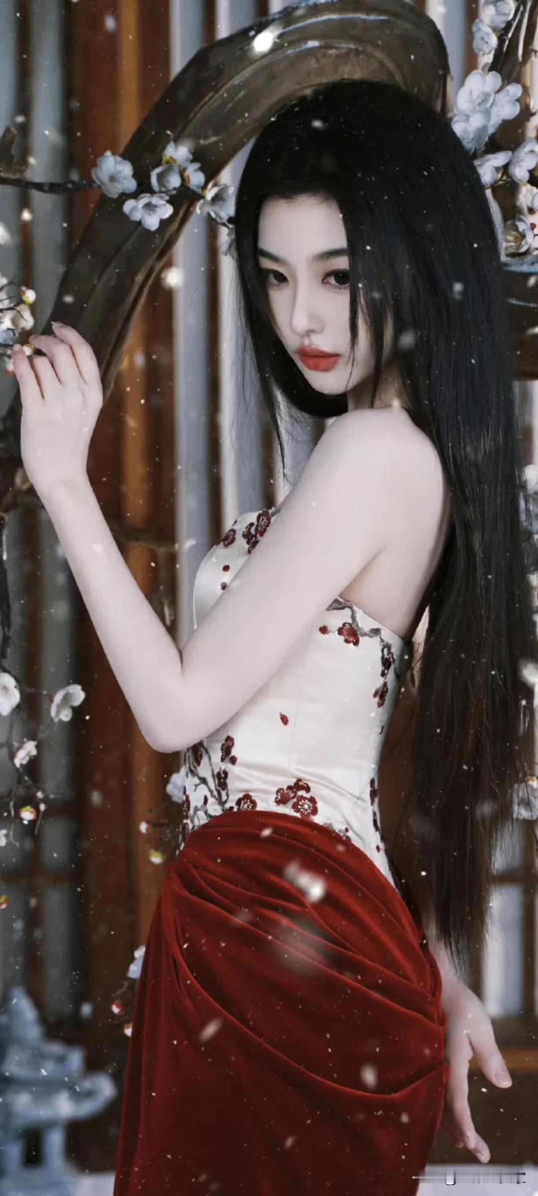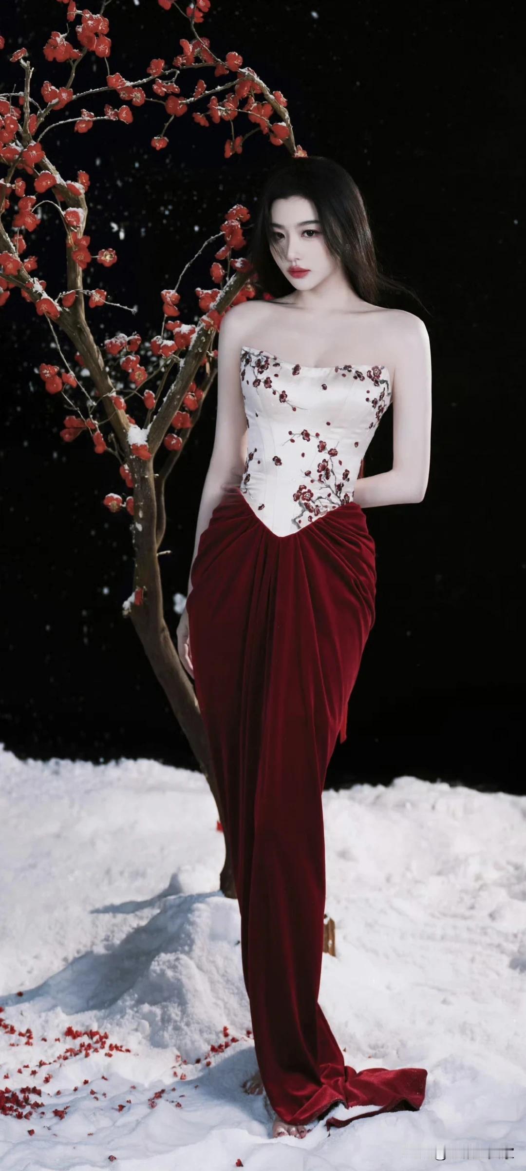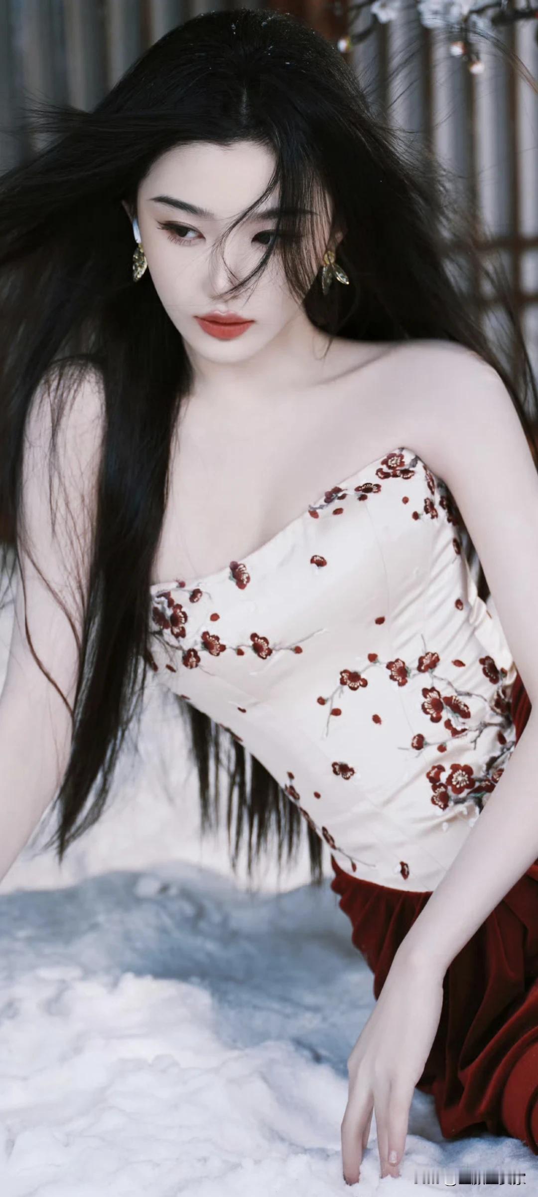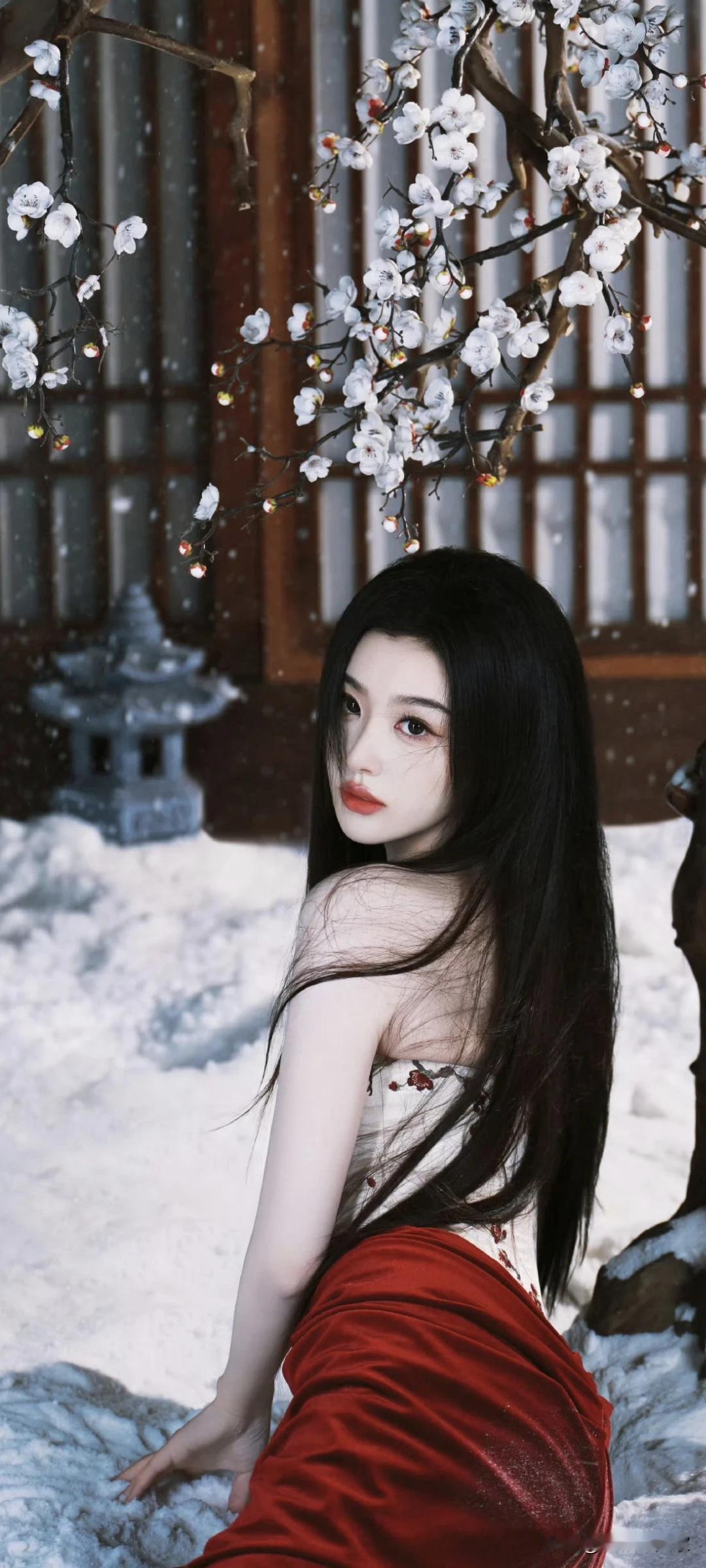 孔雪儿写真壁纸~这红梅、白雪、红裙子一搭,往那一站,妥妥的冬日女神啊,这身材太绝了!