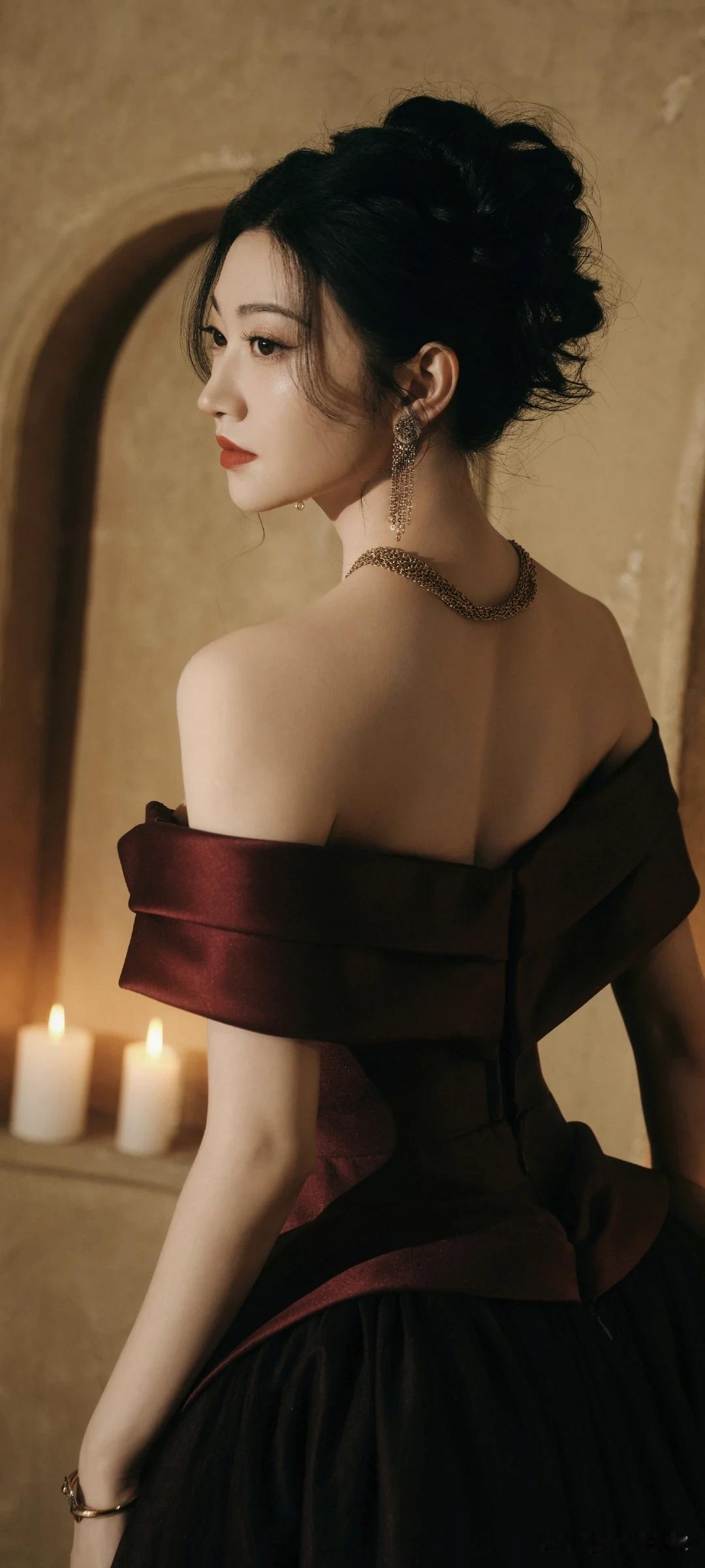 戴燕妮写真壁纸~鎏金礼服勾勒出的曼妙曲线,每一寸都在发光!