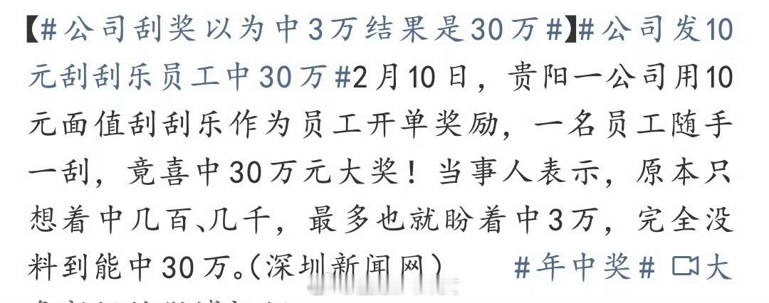 公司刮奖以为中3万结果是30万知道了,等会儿买一张