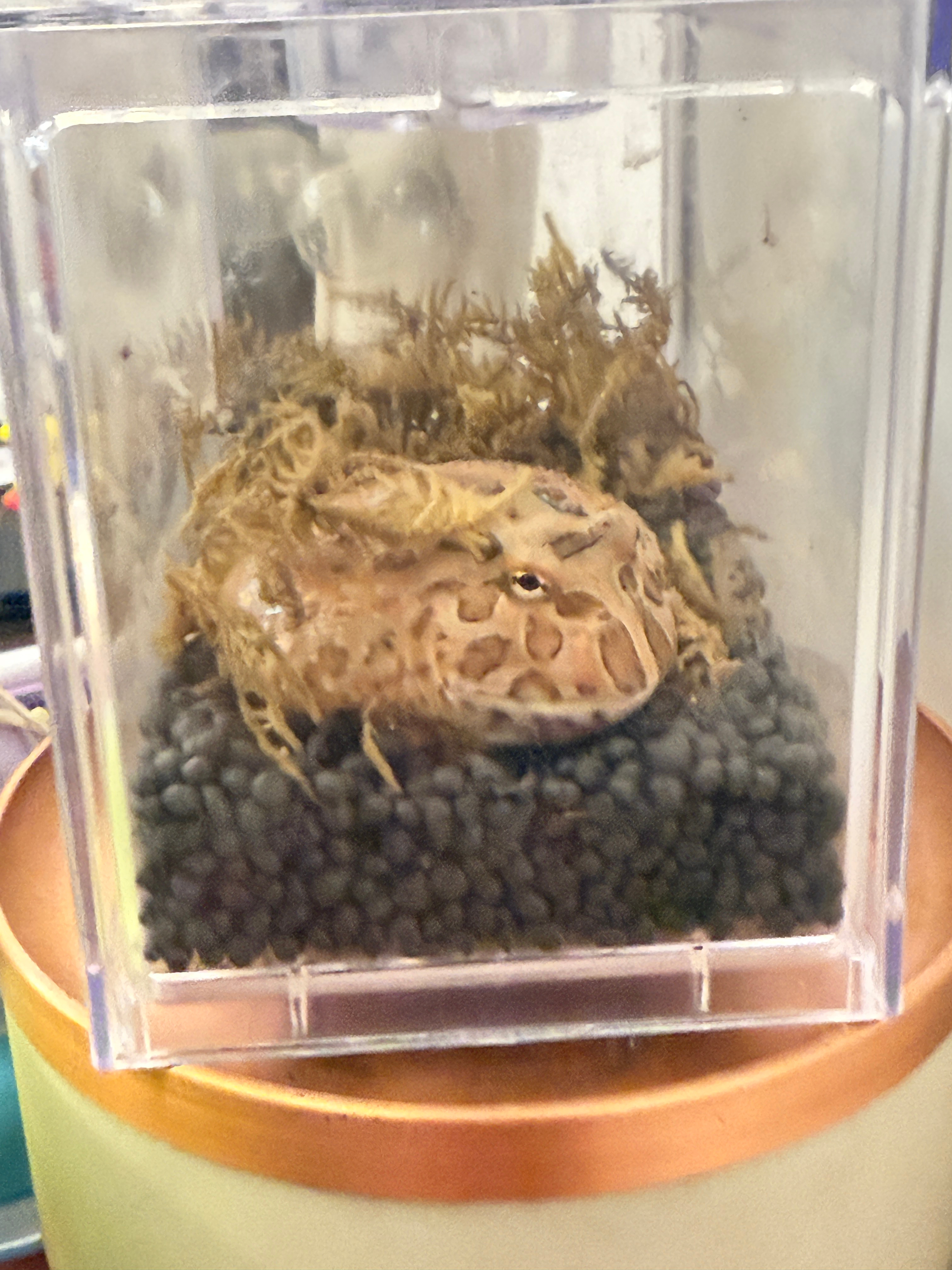 旅蛙一回来就问我banana喂了吗?我说没有旅蛙一个箭步冲到banana的别野前仔细观察,说完了、死掉了!我说可能吗?旅蛙:它饿的脸色苍白!头都抬不起来了!