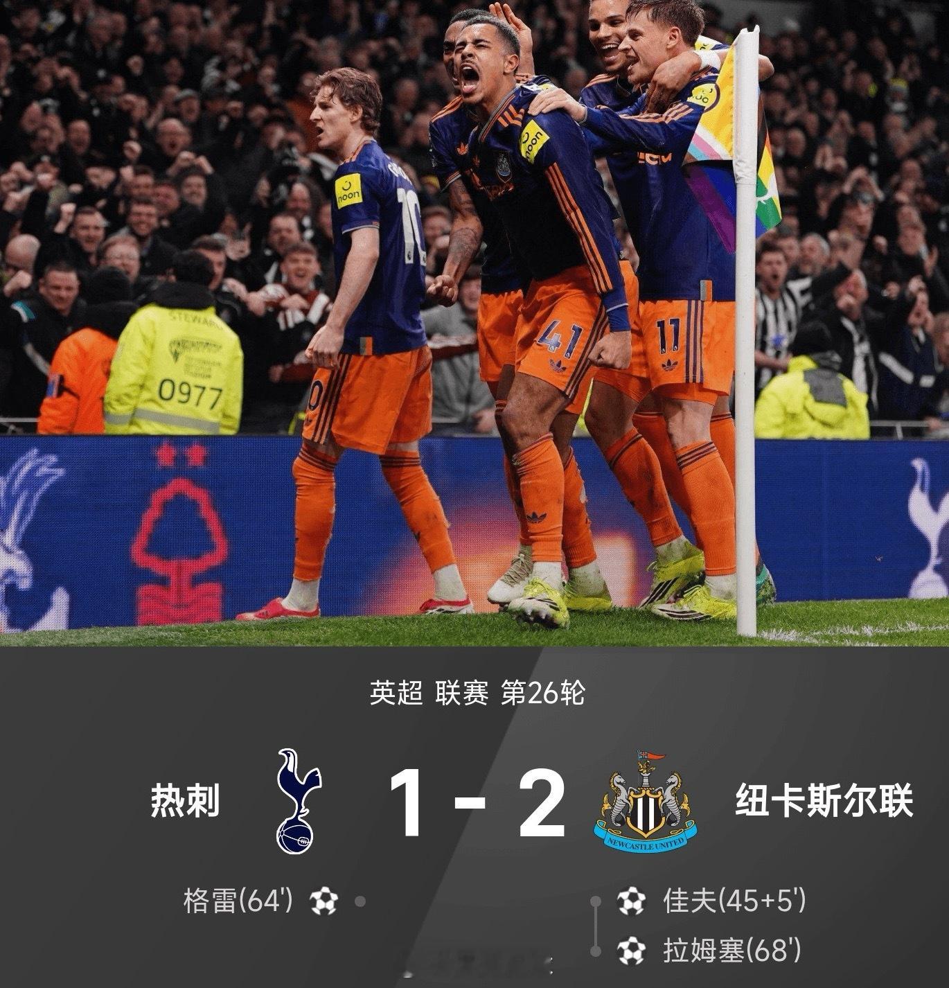 英超联赛第26轮,纽卡斯尔联2-1战胜热刺。全场比赛,佳夫、拉姆塞破门建功,格雷破门难救主。2026世界杯进行曲热刺