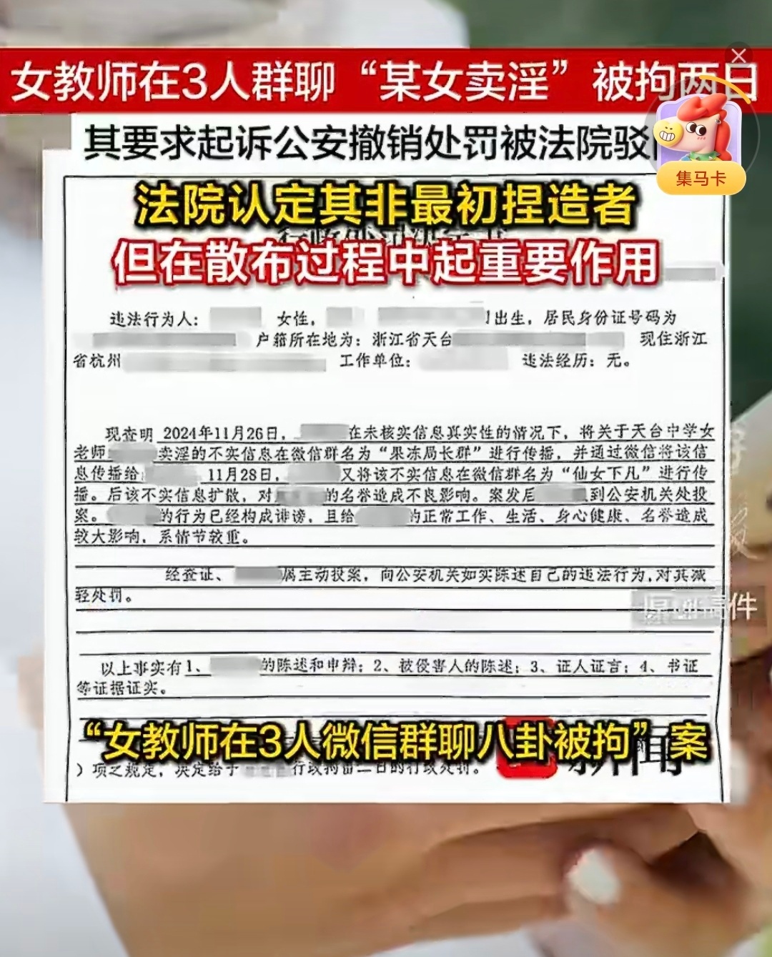 女教师群聊八卦被拘案最新进展这都是造谣和人身攻击了吧“构成诽谤”被行政拘留两日估