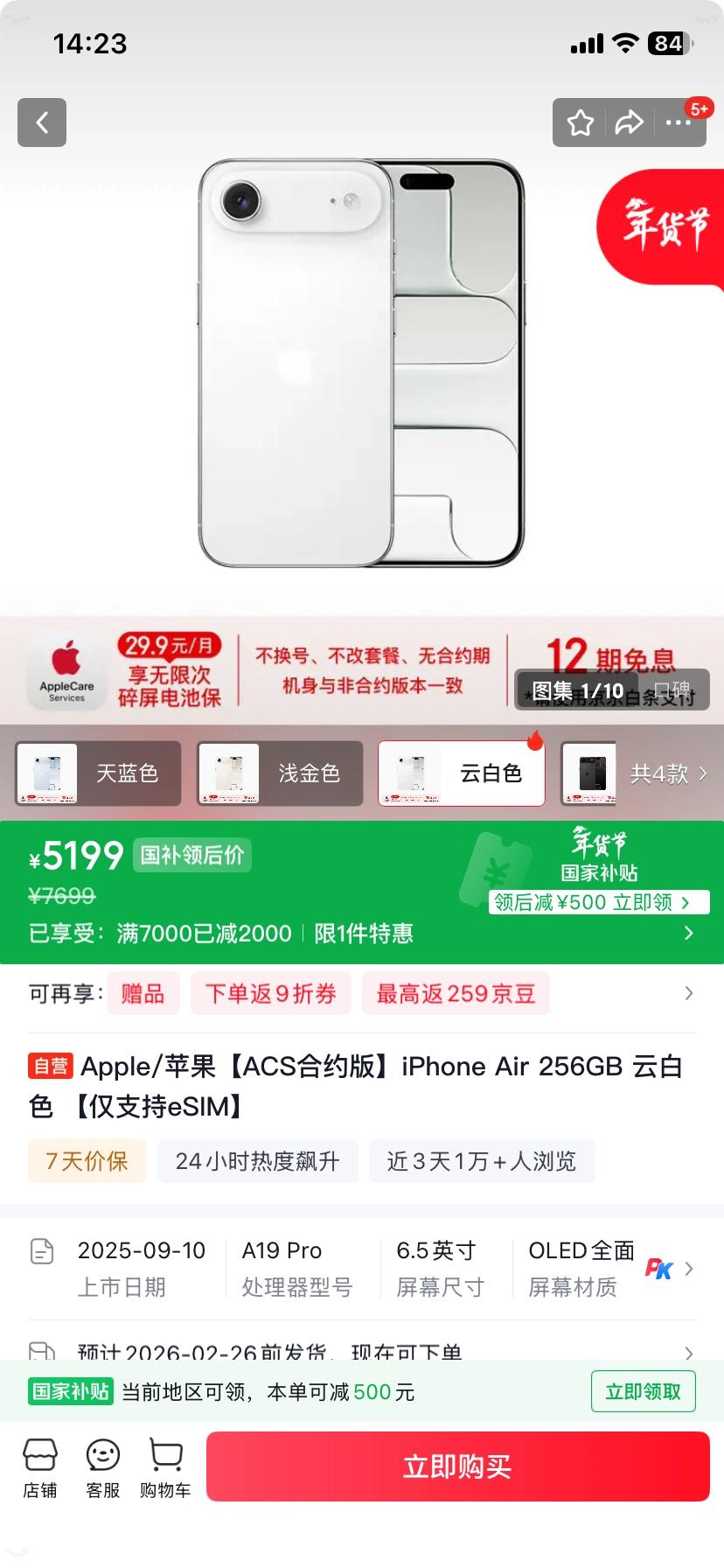 iphone air居然5199了。 带的29.9的apple care,到手可以退订,相当于5199+29.9 这性价比,难怪安卓销量差。