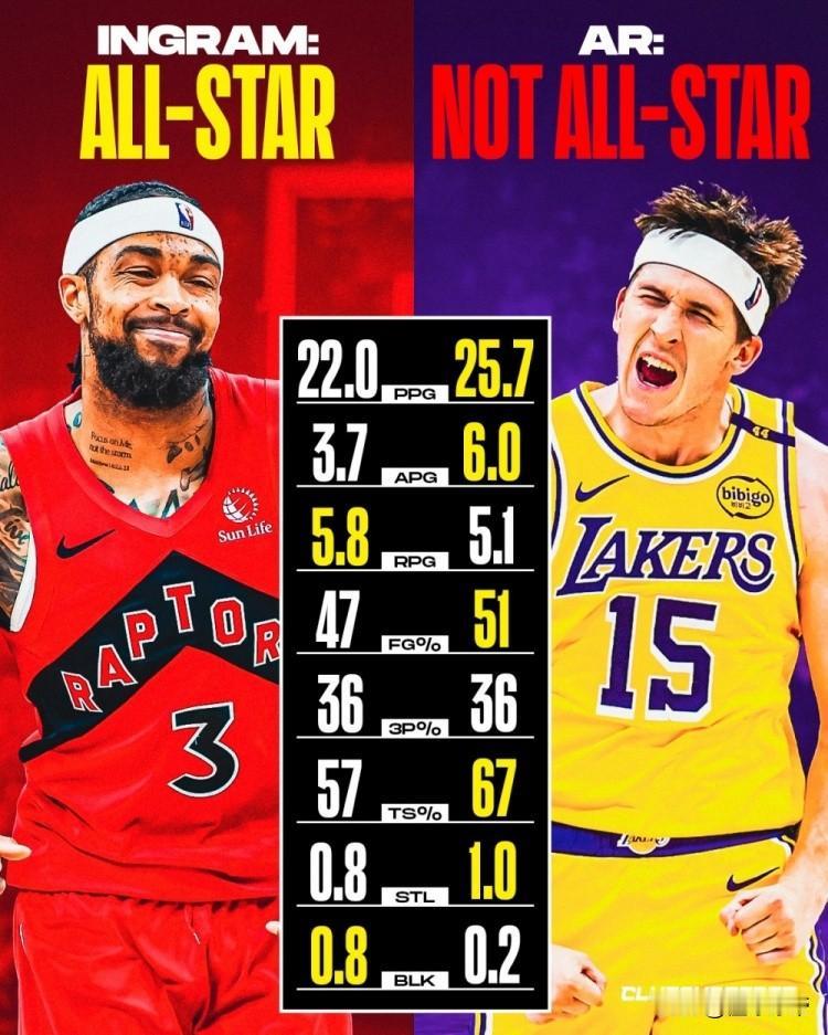 哈登的球迷不同意,里夫斯的球迷也不同意英格拉姆进全明星! 英格拉姆递补受伤的库里进了全明星,哈登的球迷还没抗议完,湖人球迷又来抗议了,原来里夫斯不管是数据还是球队战绩都要比英格拉姆强。 里夫斯本赛季场均可以拿到25.7分5.1篮板6.0助攻的数据,湖人战绩32胜21负西部第五。 英格拉姆本赛季场均可以拿到22.0分5.8篮板3.7助攻的数据,猛龙战绩32胜22负东部第五。 里夫斯除了篮板没有英格拉姆高外,其余数据都比英格拉姆高,而且还是又帅又能打的白人,可惜湖人已经有詹姆斯和东契奇两人进全明星了,联盟不允许湖人再有第三人进全明星了。