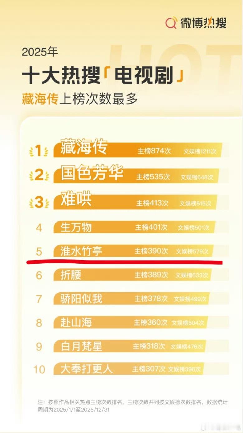 2025年十大热搜电视剧,刘诗诗《淮水竹亭》排top5,确实出圈,而且后劲挺足,周边也卖爆,还二次登财报,还得是一姐