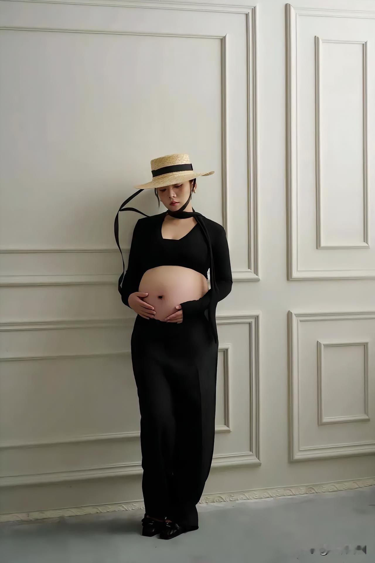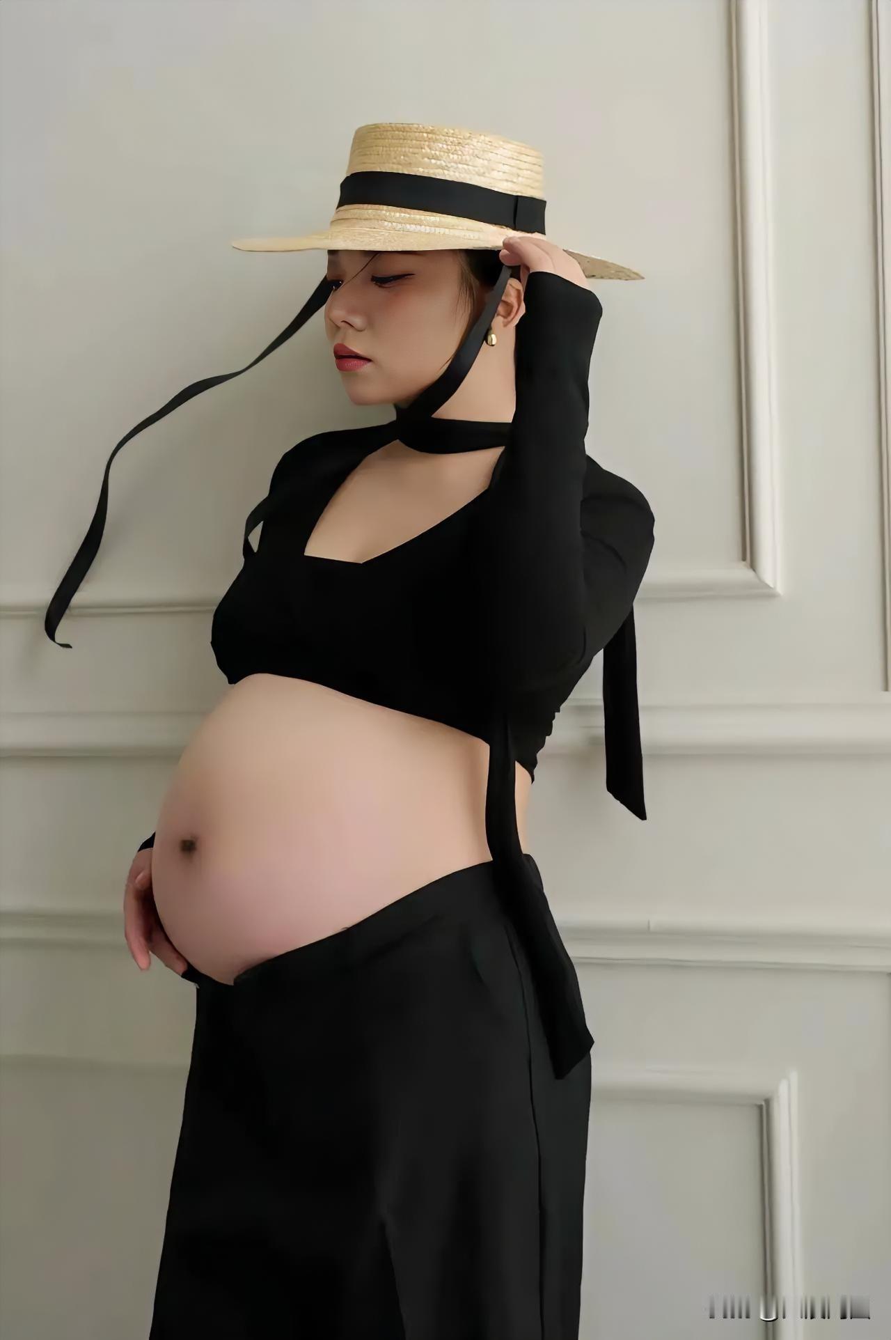 优雅孕妈穿搭指南,黑色露脐上衣+草帽,尽显时尚与优雅!