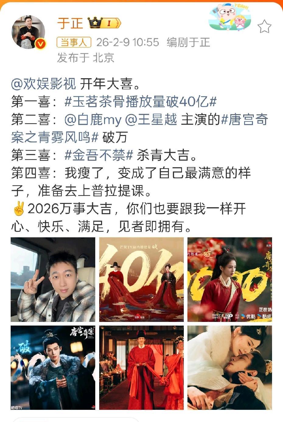 于正这回真没给同行留活路! 一部剧狂揽40亿播放,把所谓的“深度好剧”打得满地找牙,这巴掌响不响? 不止是《玉茗茶骨》这种大制作。 他家那部短剧《唐宫奇案》,白鹿和王星越演的,直接把隔壁台的《成何体统》给超了。 热度破万,你敢信? 好多人还在那争呢,说《生命树》这种才是好剧,有深度,能流传。 说于正搞的都是快餐文化。 可问题是,观众就爱吃这套啊! 数据摆在眼前,不服不行。 人家玩的就是市场,玩的就是人心。 所以问题来了,你是愿意看曲高和寡的“艺术品”,还是选择轻松解压的“下饭剧”?