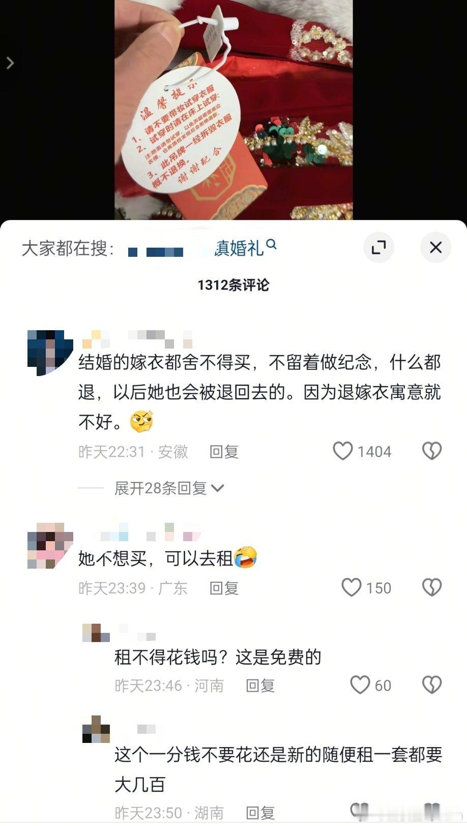 女子结婚,将婚服穿脏后,焊接吊牌退货。商家是真没招了,巨型吊牌也没用了。她连结婚的嫁衣都舍不得买。女子将敬酒服穿脏后焊接吊牌退货