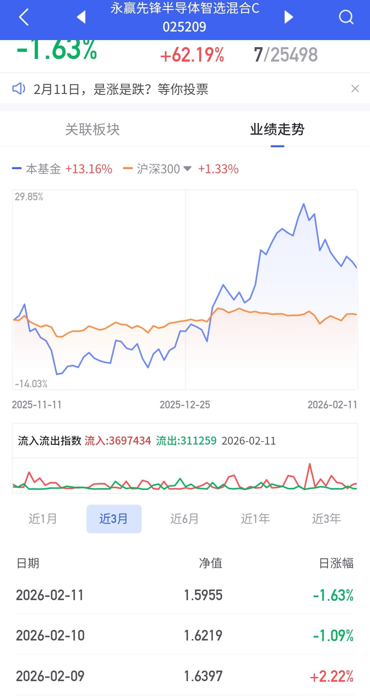 同样是存储芯片,为啥一个连红三天,一个连跌两天? 今天A股又给我上了一课,手里两只存储芯片基金,走出了完全不同的剧本: - 广发远见智选:+0.24%,连续三天收红 ✅ ​ - 永赢先锋半导体:-1.63%,连续两天收绿 ❌ 同样的赛道,不同的节奏,这背后其实是基金经理的风格差异。 一、今日战况:稳 vs 猛 - 广发远见智选:在市场普跌的环境下逆势翻红,近三天连续上涨,回撤控制得很好,给人一种稳稳的安全感。 ​ - 永赢先锋半导体:今天回调幅度不小,把前几天的涨幅又吐回去了一部分,弹性大,但波动也确实刺激。 二、我的一点思考 从近3个月的走势看,广发的涨幅(+33.91%)远高于永赢(+13.16%),而且走势更平滑。这说明在当前的市场环境下,偏稳健的策略反而能吃到更多收益。 我个人判断,存储芯片这个位置下探空间有限,向上看有10个多点的反弹空间。现在就是耐心持有,用时间换空间。 (以上仅为个人逻辑分享,不构成投资建议 怎么挑选一只优秀得基金基金 股票基金 买基金 基金指数 基金涨跌榜 基金产品分析 基金定股 基金资产估值 存储芯片行情 存储芯片 芯片股行情 存储芯片概念股 存储半导体行业 芯片板块 芯片板块分析