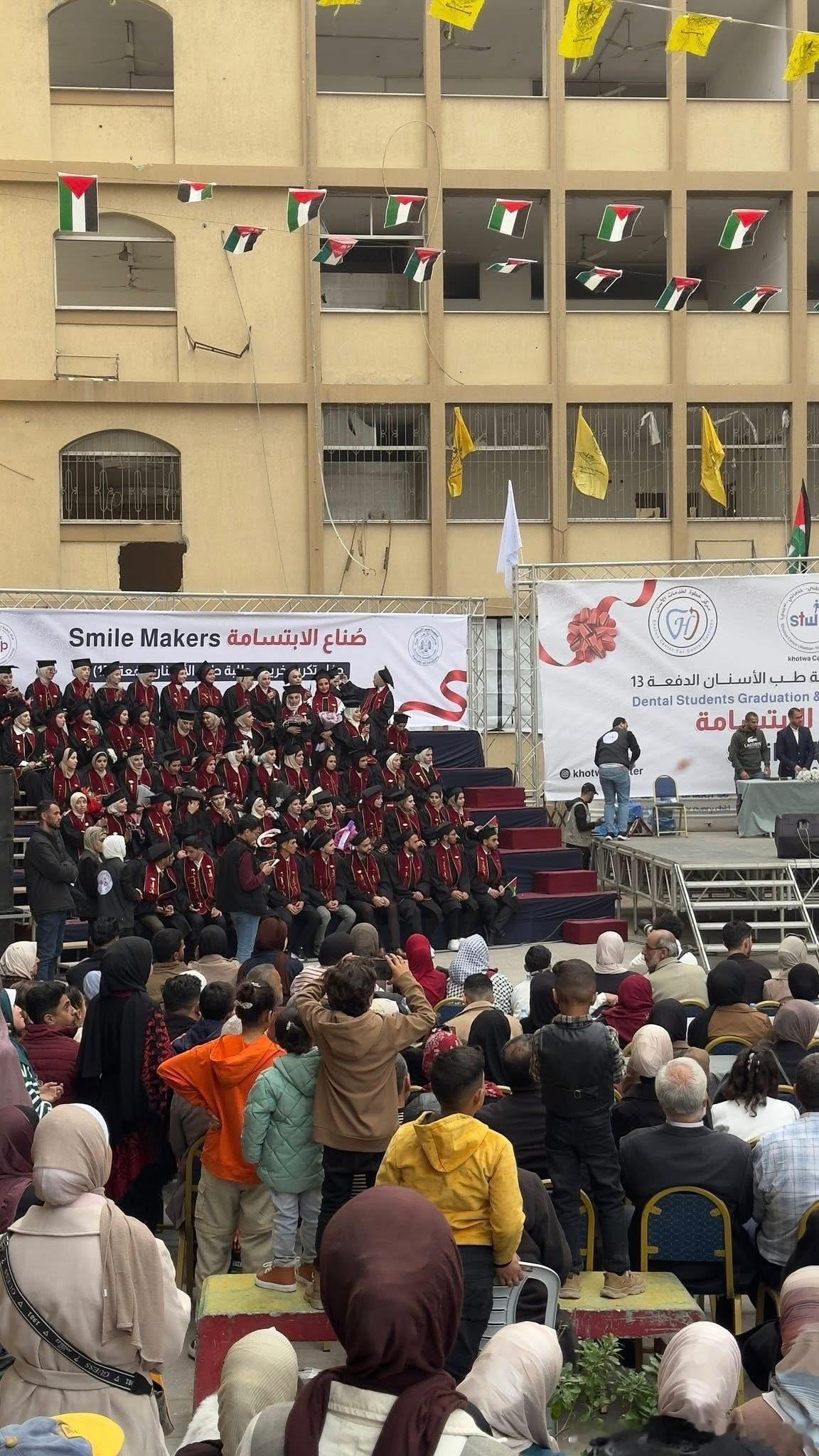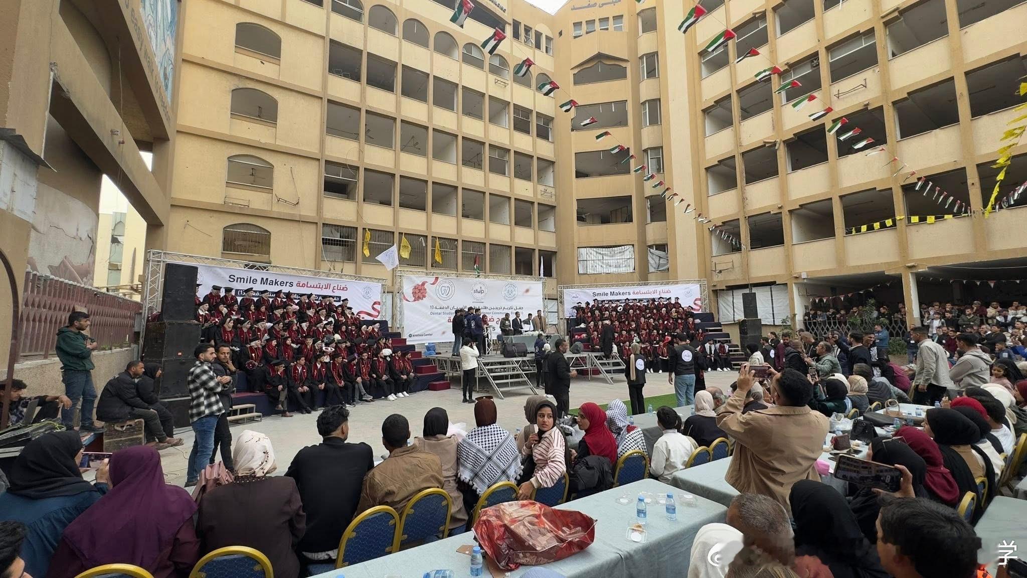 在经历了两年多的种族灭绝战争,以及由此带来的破坏、流离失所和严峻的人道局势之后,加沙地带昨天迎来了数十名阿兹哈尔大学牙医专业学生的毕业,这一场景展现了在重重困难面前依然不屈的生命意志。