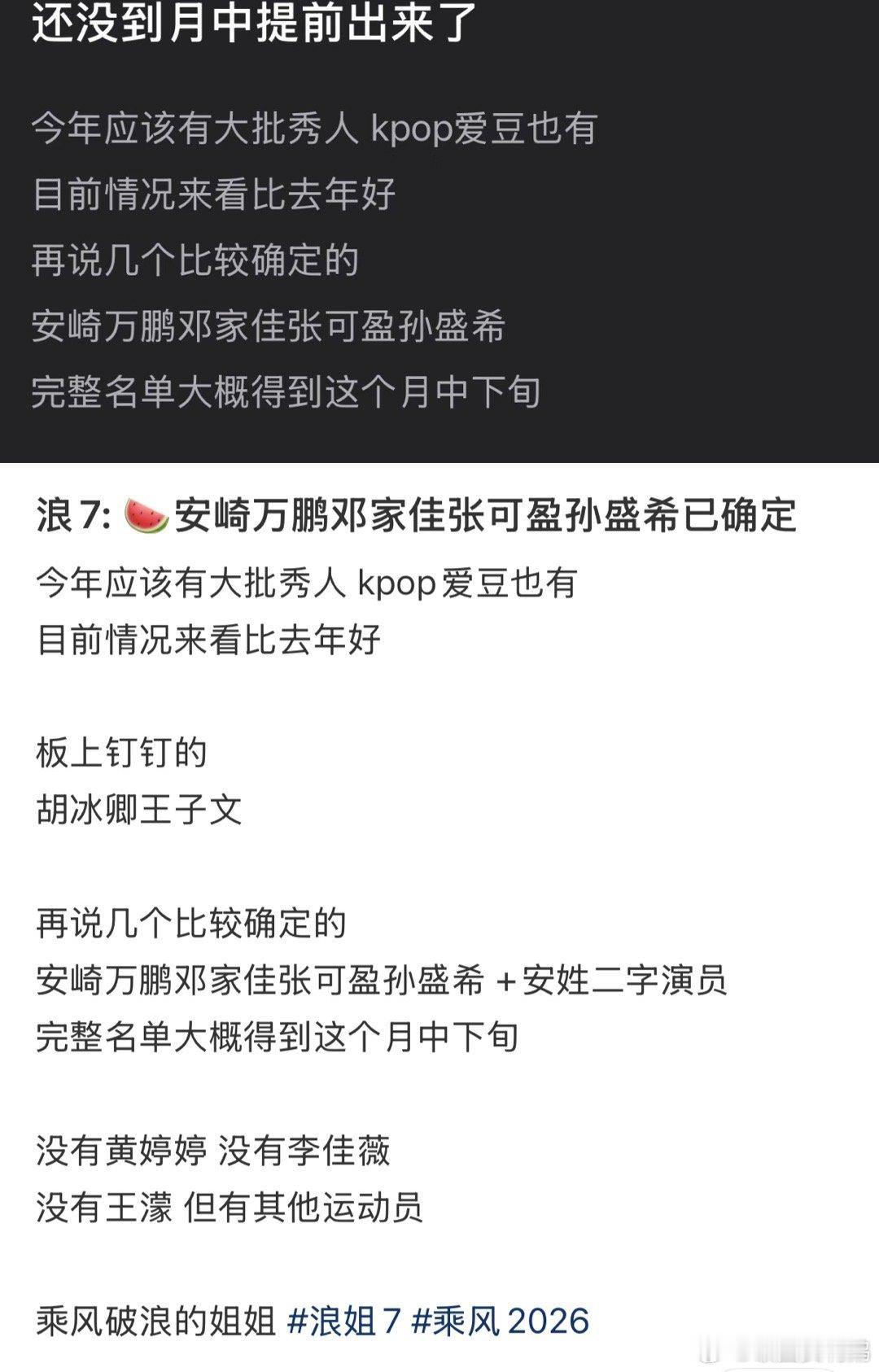 网传浪姐7各版本名单网传的浪姐7各版本名单……孰真孰假