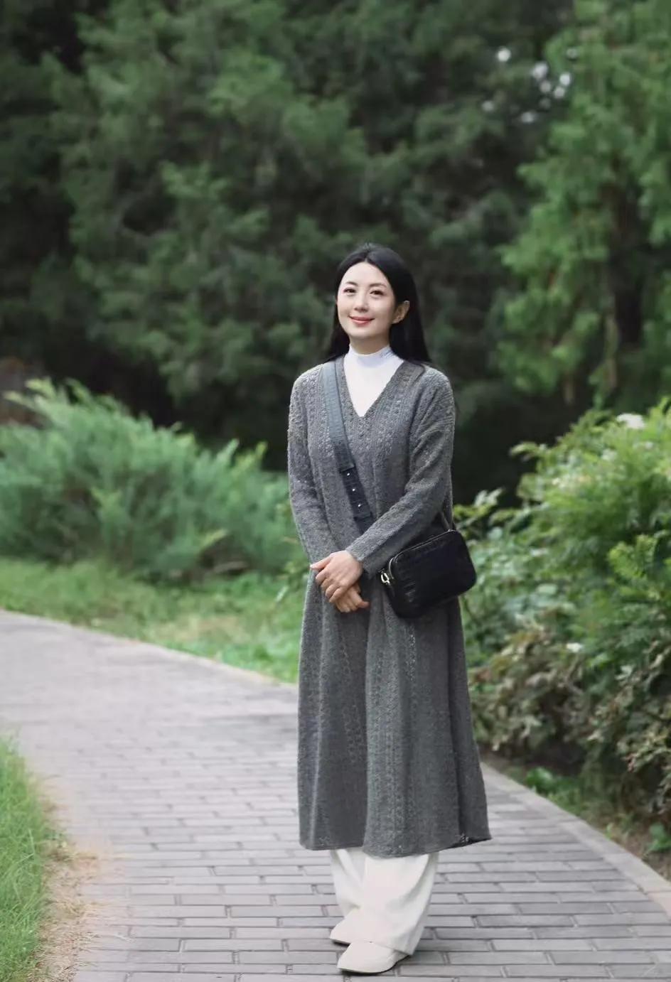 杨童舒的穿搭太有品味了!灰裙+白打底+阔腿裤,温柔又高级,中年女人照着穿准没错❤