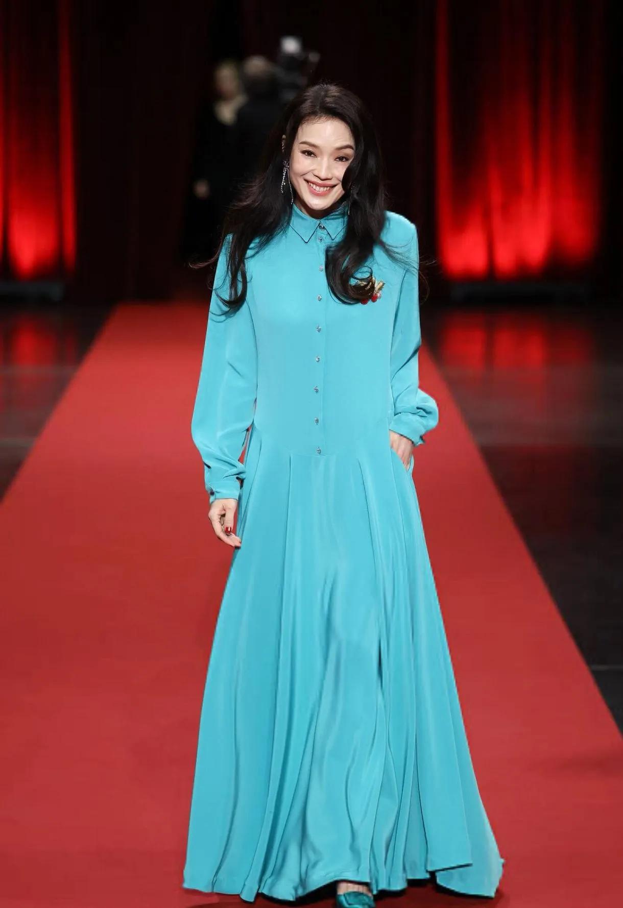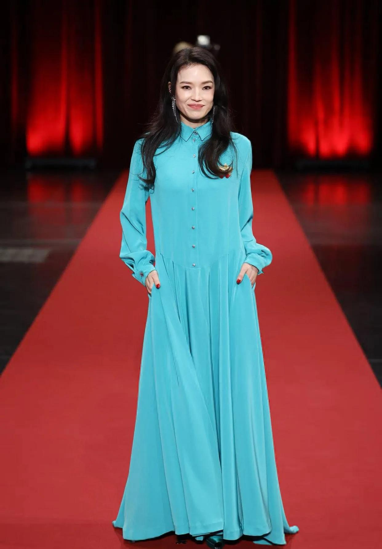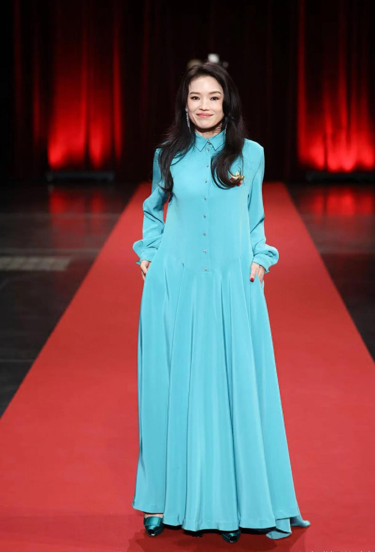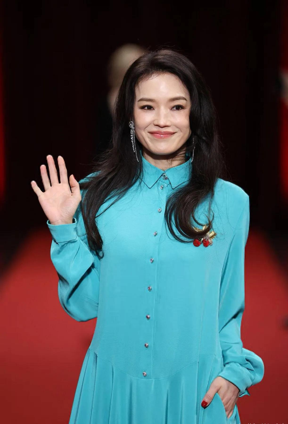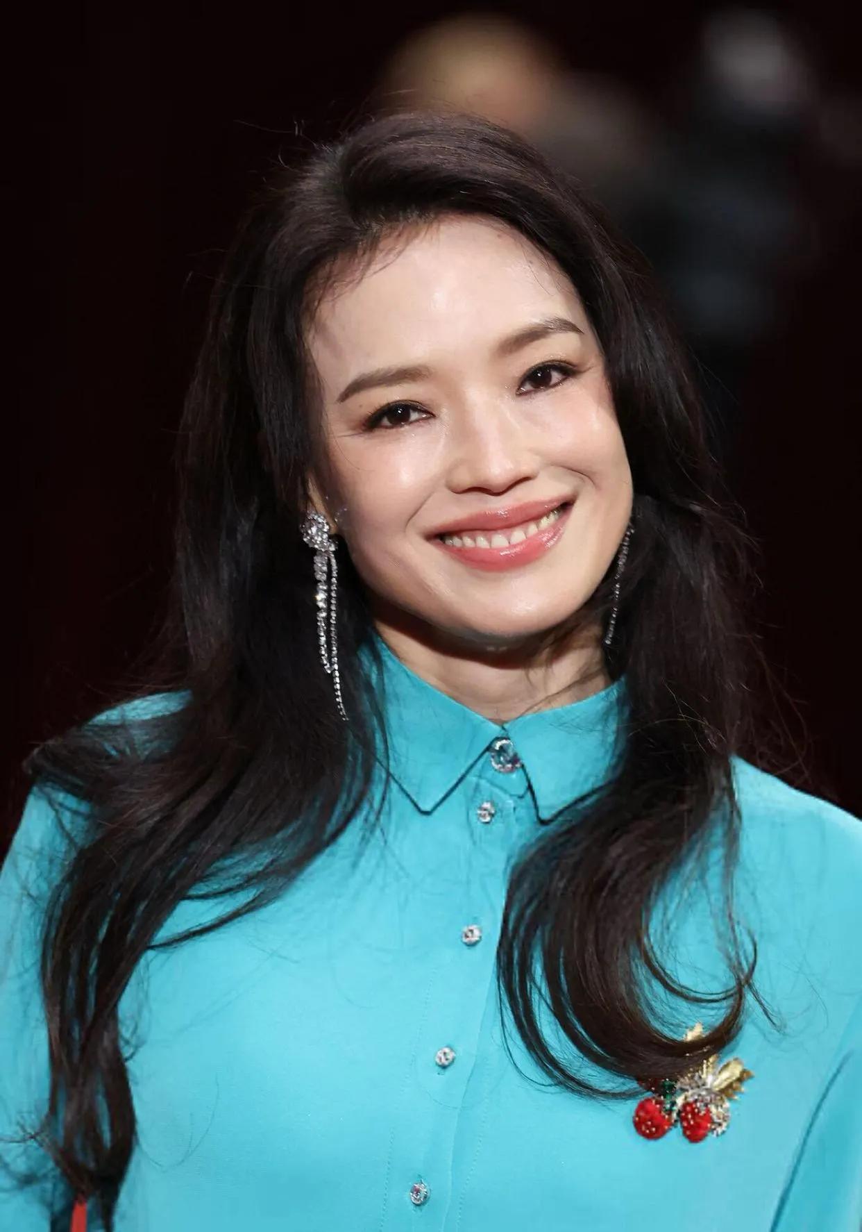 舒淇这一身湖水蓝衬衫裙,把松弛感拿捏得恰到好处✨ 松垮的版型不刻意凹曲线,反而透着随性大气。胸前的樱桃胸针和流苏耳饰是点睛之笔,瞬间打破沉闷,优雅又灵动。 舒淇 松弛感穿搭 明星红毯