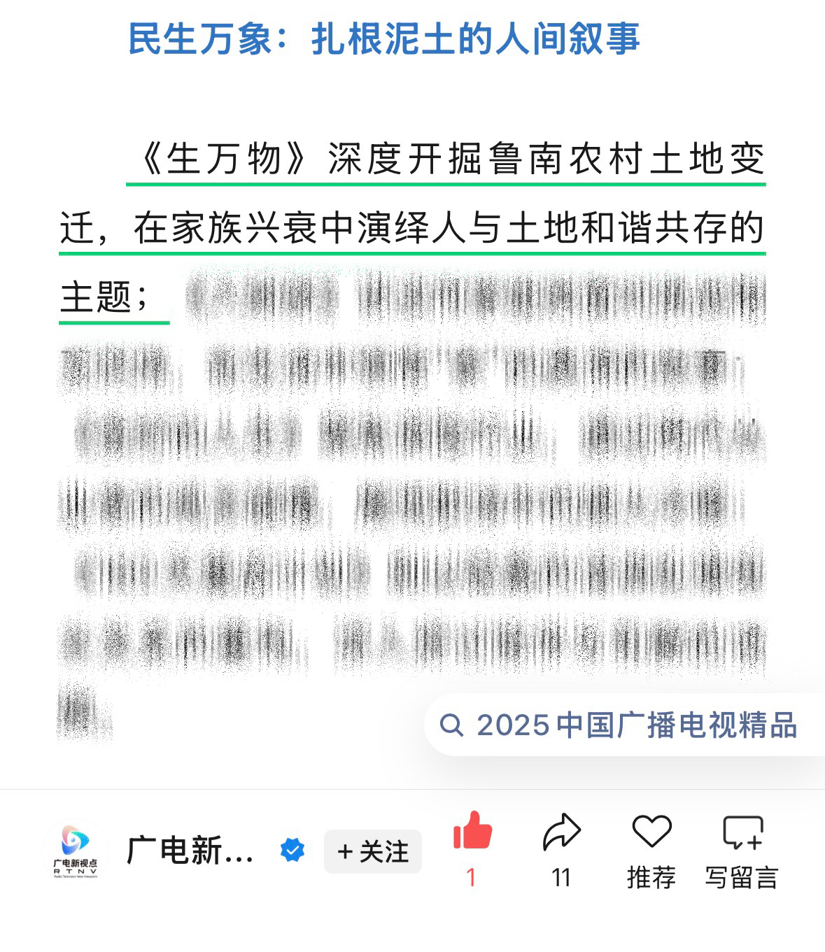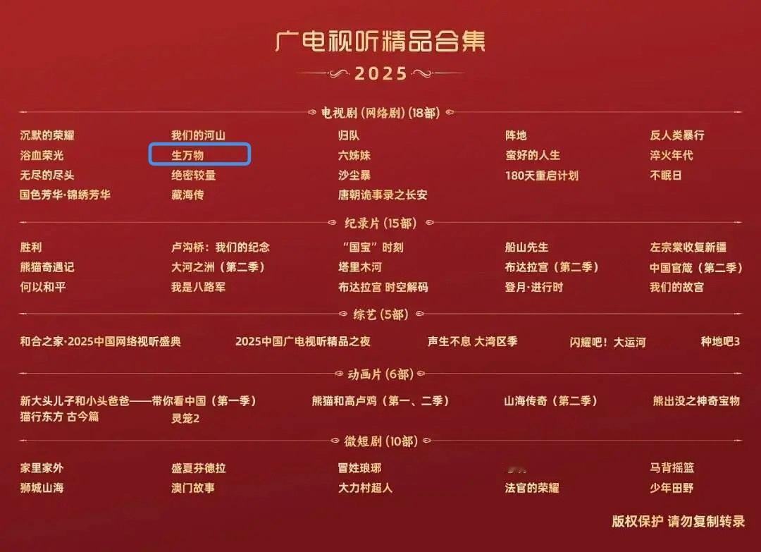 2025广电年鉴(2025广电视听精品合集)发布恭喜杨幂主演电视剧《生万物》入选!!👏 广电赞扬:《生万物》深度开掘鲁南农村土地变迁,在家族兴衰中演绎人与土地和谐共存的主题