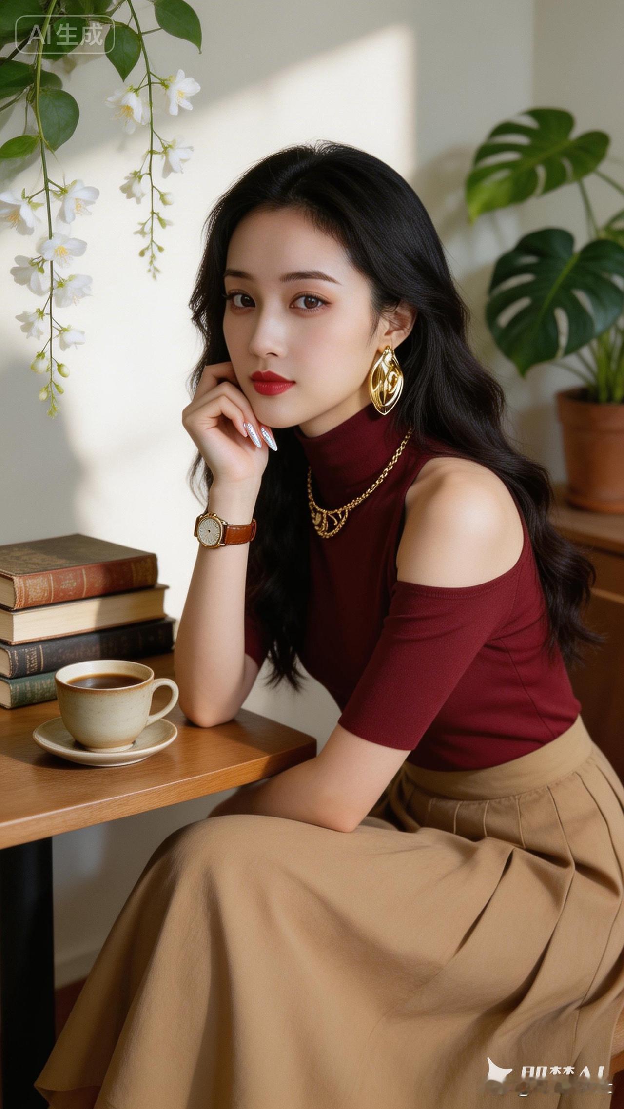 优雅穿搭指南:酒红色上衣+米色长裙,搭配精致首饰,尽显女性魅力。
