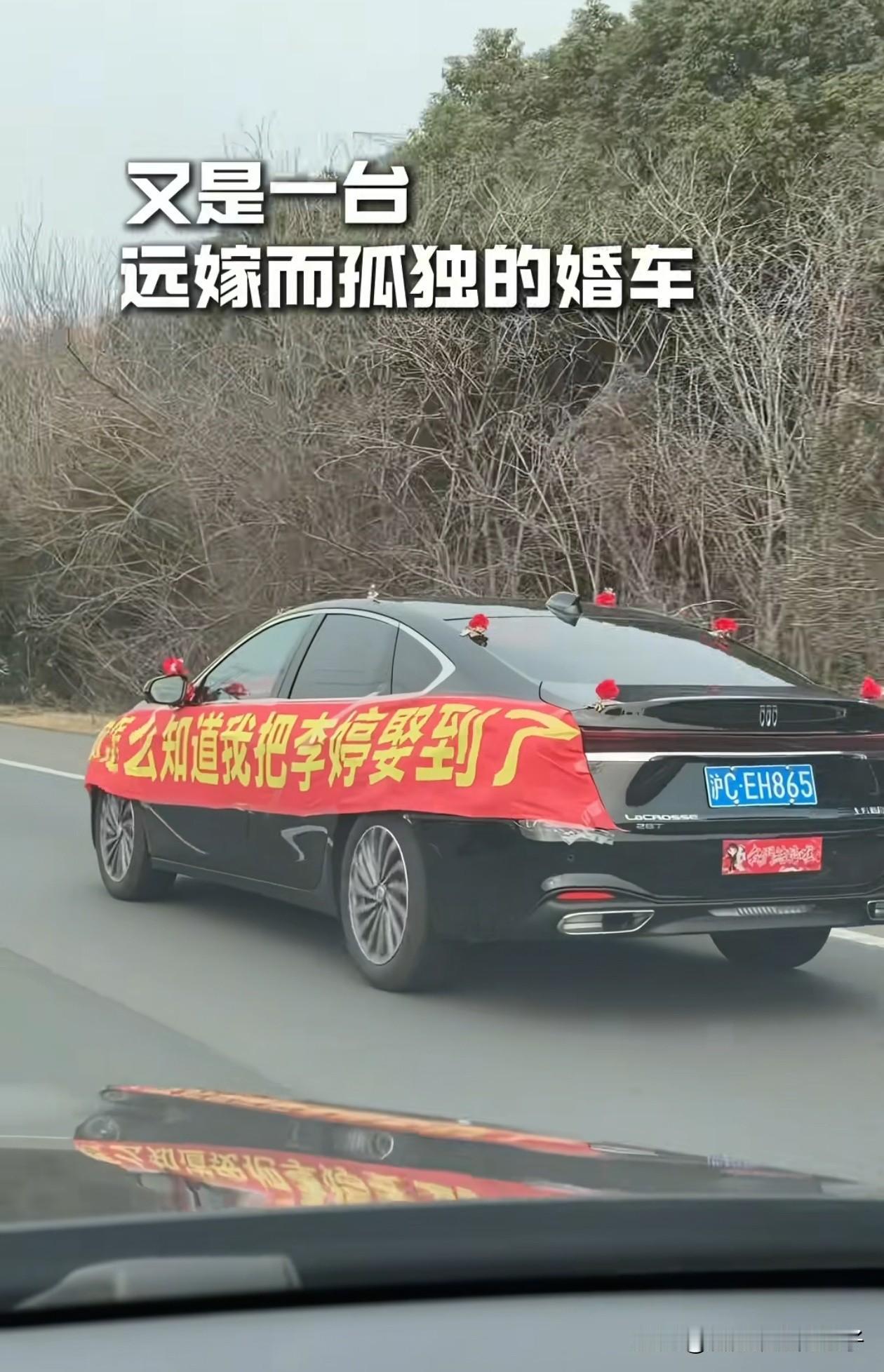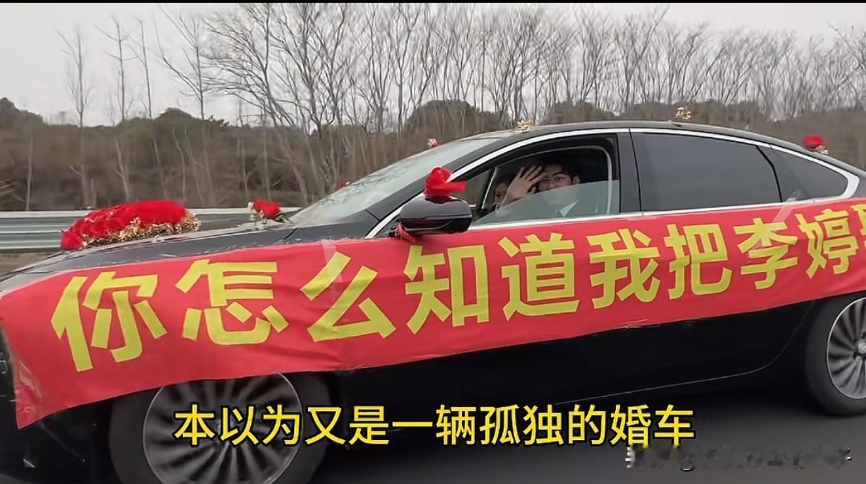 被全网刷屏的新娘李婷找到了! 原本只是一场孤独的远嫁,在一群热心的陌生车主加入后,却成为了全网最有排面的接亲。 没有浩浩荡荡的车队,一辆孤独的别克君越独自行驶在高速上,车身贴着一句话:你怎么知道我把李婷娶到了! 路过的车主看到后,纷纷摇下车窗向小伙打招呼、送祝福,小伙也开心的一一回应。 小伙可能没有能力租豪华的车队,但看得出来,他肯定很爱这个女孩。 远嫁最揪心的就是父母,在这之前,父母可能还会担心女儿远嫁不会幸福,但相信他们在看到这个画面后,也会放心把女儿交给小伙了。 祝福小伙子和李婷永远幸福!