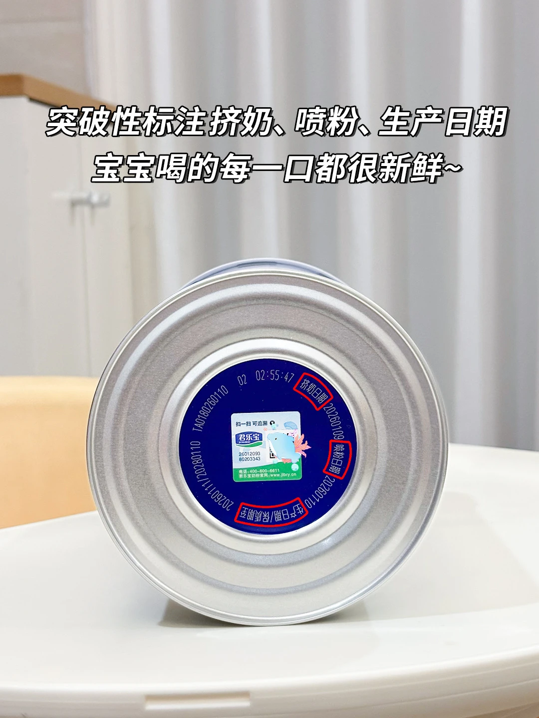��♀️它是100%自有有机牧场生牛乳,从挤奶到灌装不超过72h,全程冷链锁鲜,罐底扫码能看挤奶、喷粉、生产三个日期,新鲜透明。