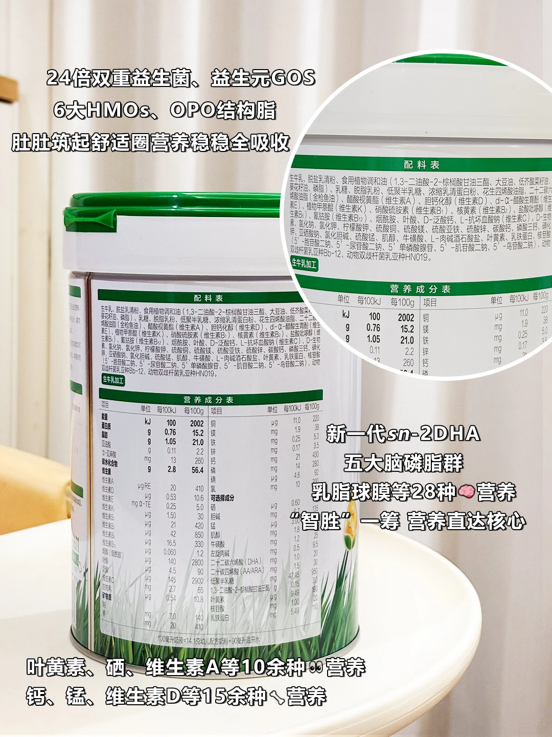 ��还含有新一代sn-2DHA,吸收效率很高,至高50倍脑营养吸收力。再搭配5大脑磷脂、乳脂球膜等共28种脑营养🧠,给宝宝认知成长添了把劲。