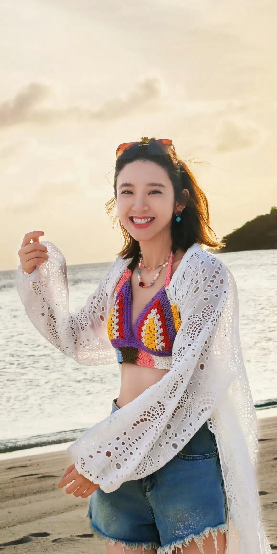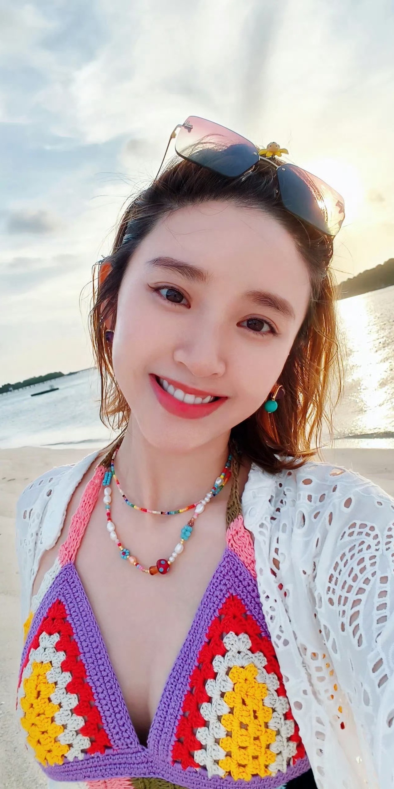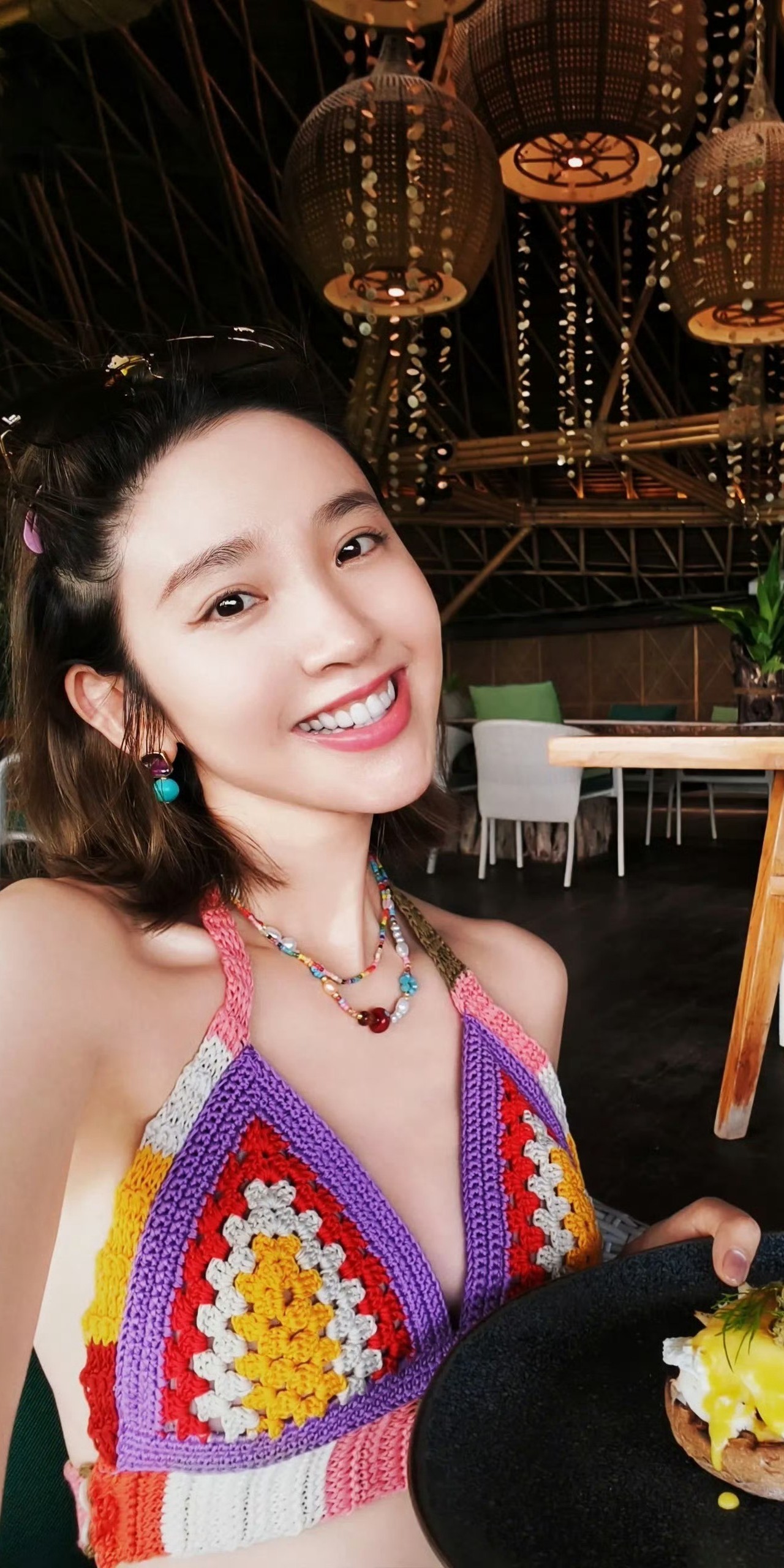 唐艺昕休闲泳装,笑容好甜,身材很好。唐艺昕