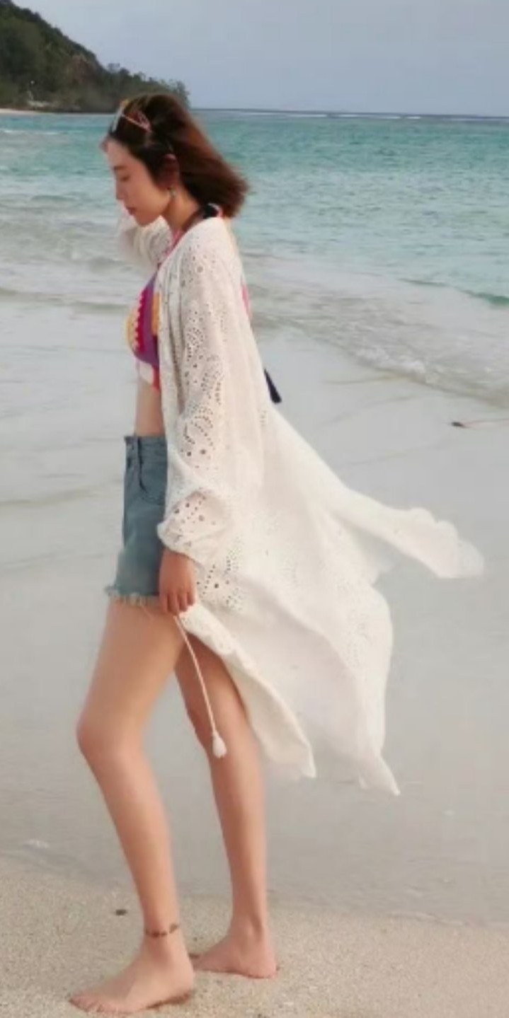 周也挂脖白裙,冷感少女。周也