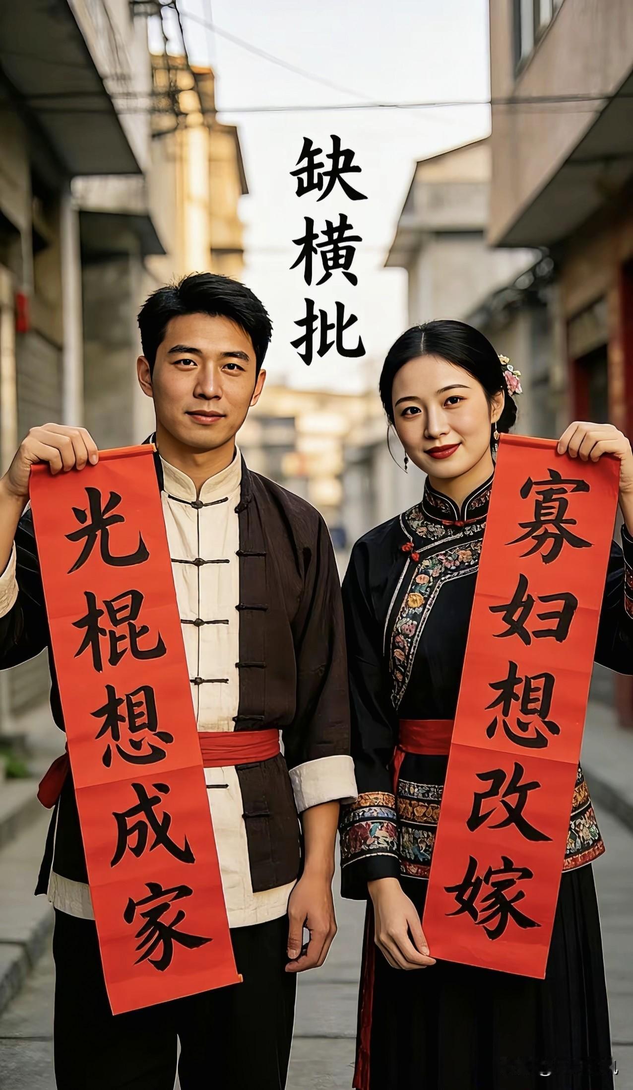 寡妇想改嫁,光棍盼成家,这真是一拍即合,马年这缘分,就是老天爷亲手搭的桥,简直是天作之合,佳偶天成。不用红娘牵线,眼神一对就定下终身。寡妇配光棍,正好凑成一对,只求一个横批就圆满了。 凡是送上横批的,届时请大家来喝喜酒哟。
