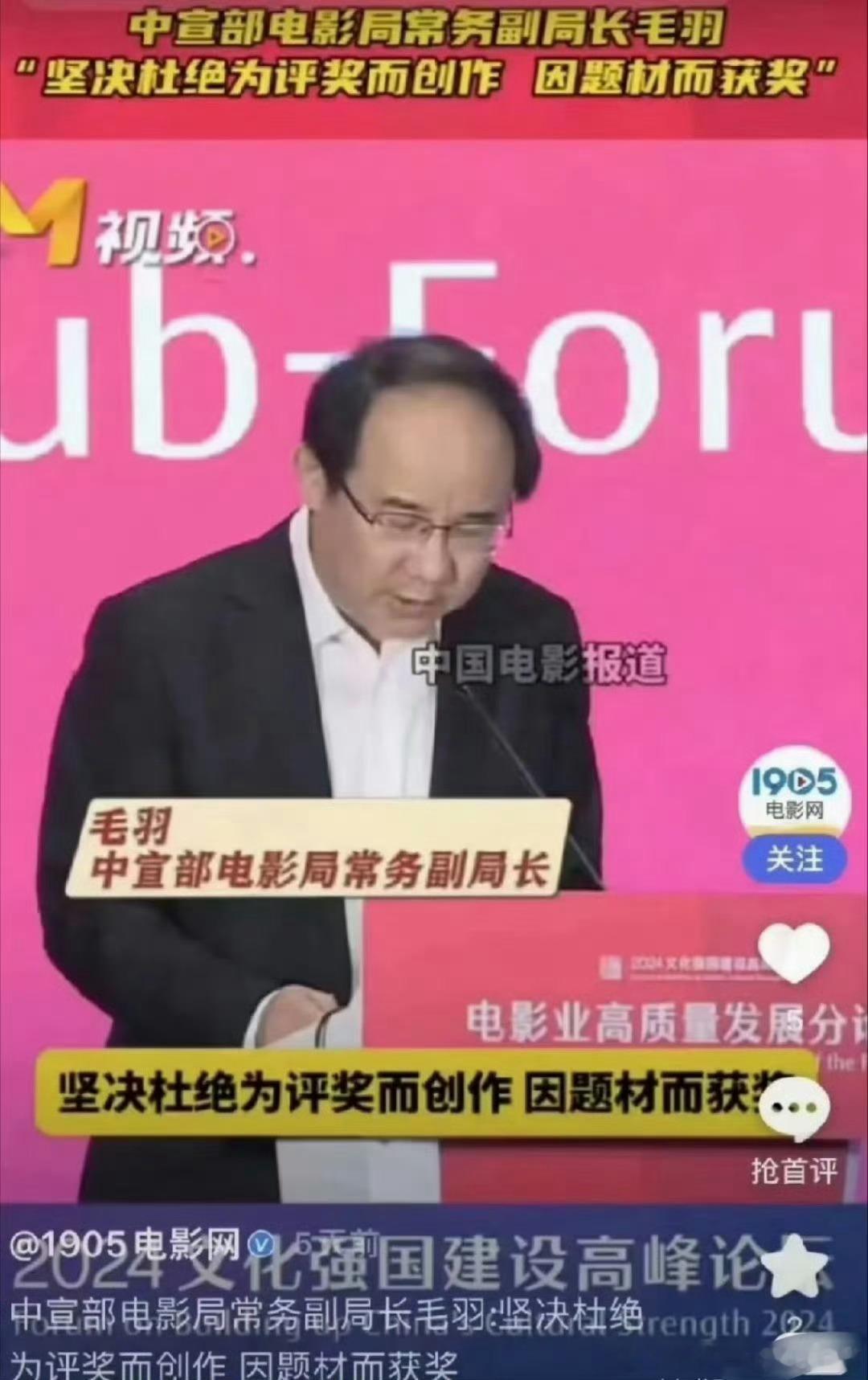 毛局:杜绝为评奖而创作,因题材而获奖!大支持!