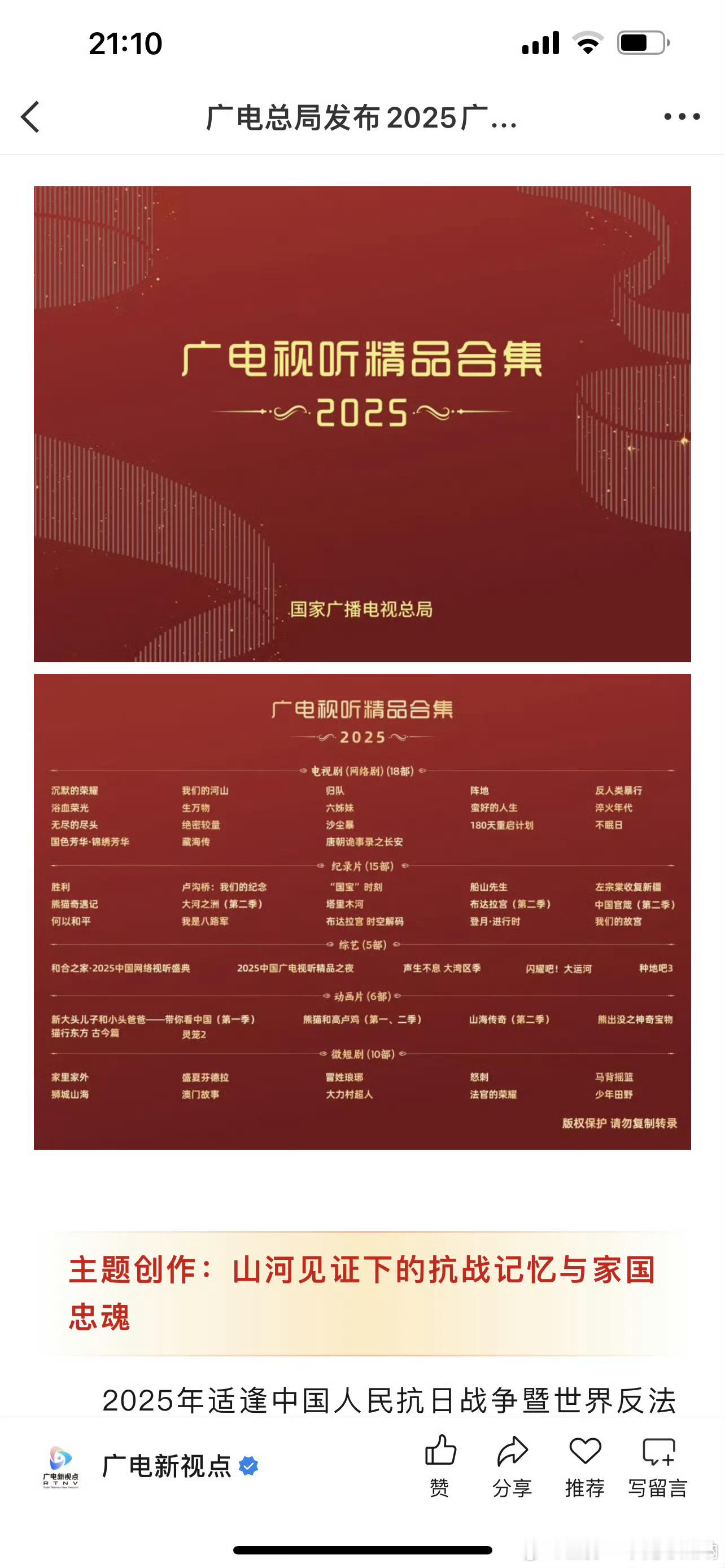 肖战藏海传入选广电总局发布2025广电视听年鉴