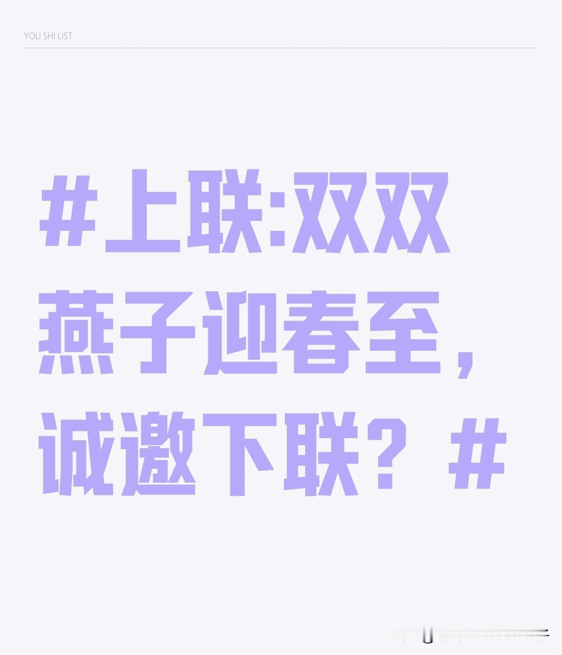 看到“双双燕子迎春至”这个上联,瞬间感觉春意扑面而来。燕子可是春天的使者,成双成对地飞来,带来了春的气息。 我试着对个下联“对对黄莺报喜来”。“对对”对应“双双”,都是数量词且形式一致;“黄莺”和“燕子”都是鸟类,很是契合;“报喜来”与“迎春至”对仗工整,而且黄莺啼叫仿佛在传递喜讯,和上联的意境相呼应。 要是再加个横批,“春满人间”就挺合适,既概括了上下联描绘的春日景象,又有满满的美好寓意。