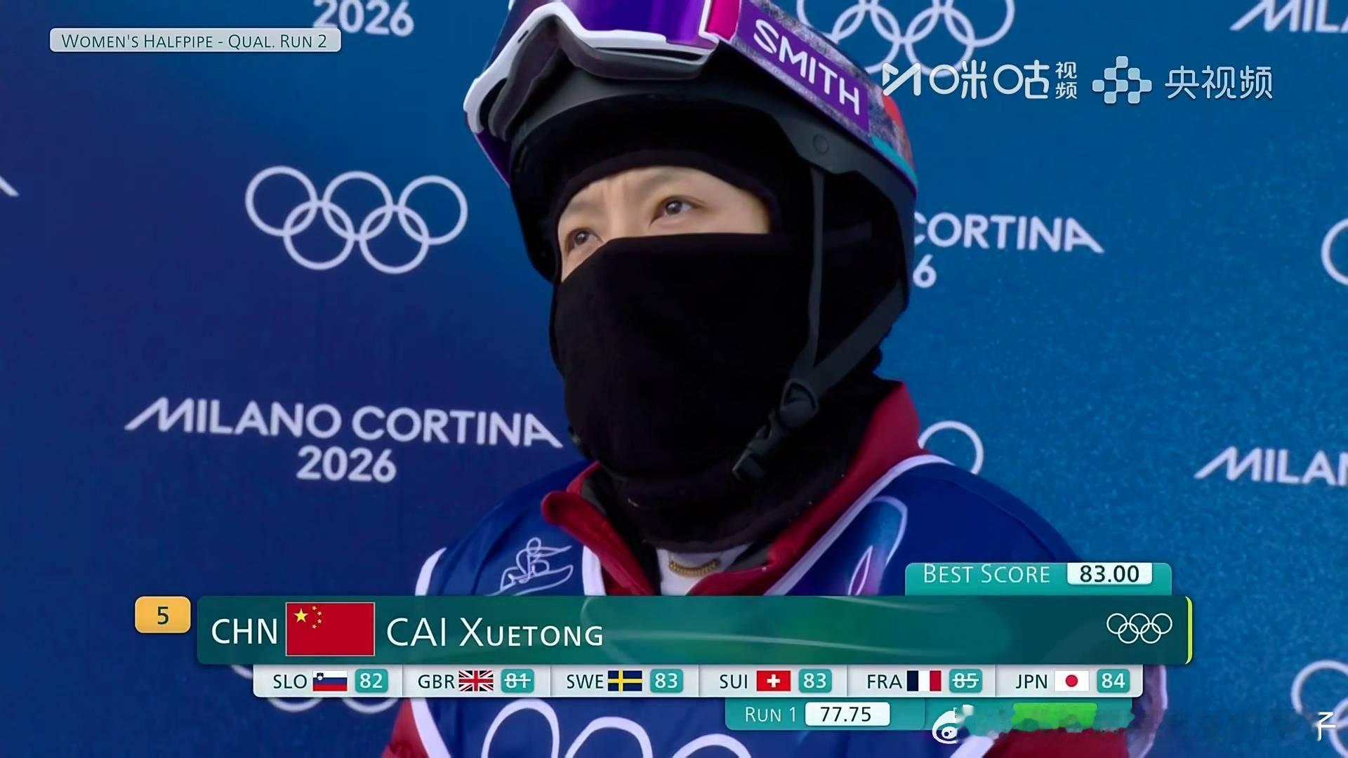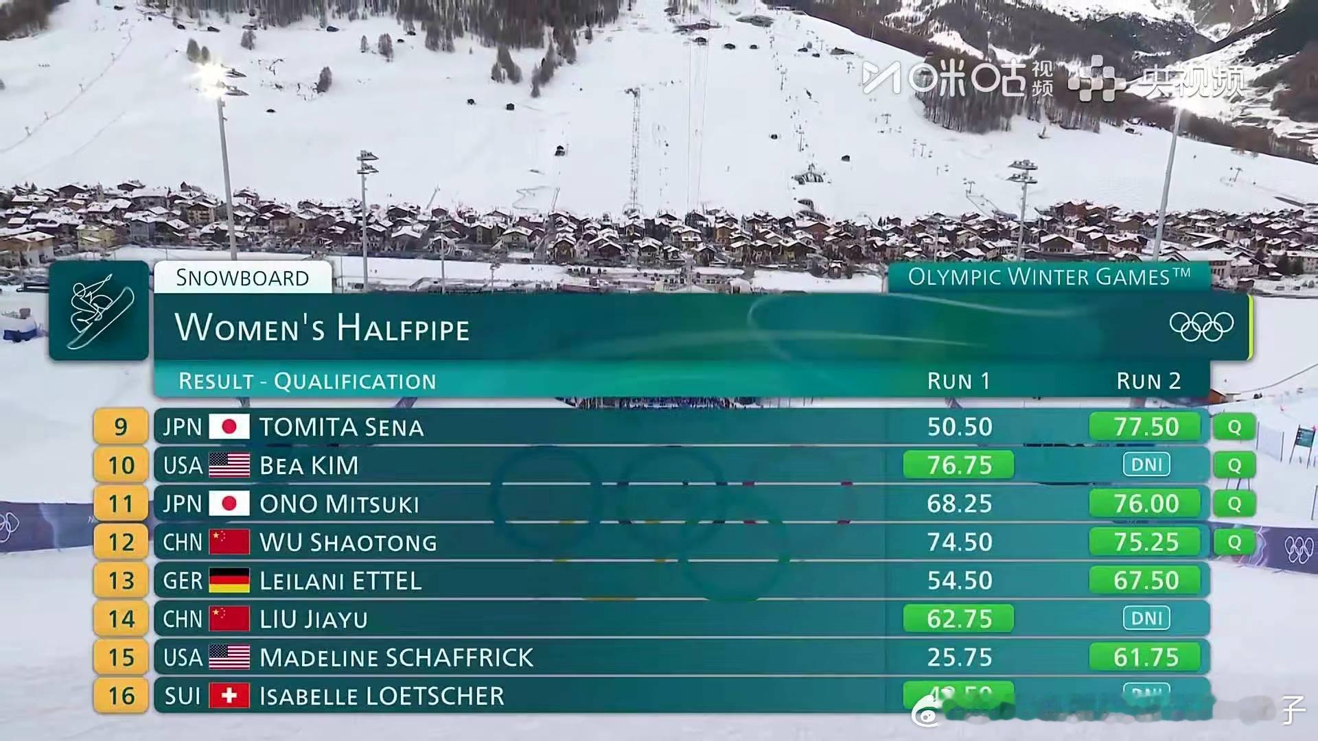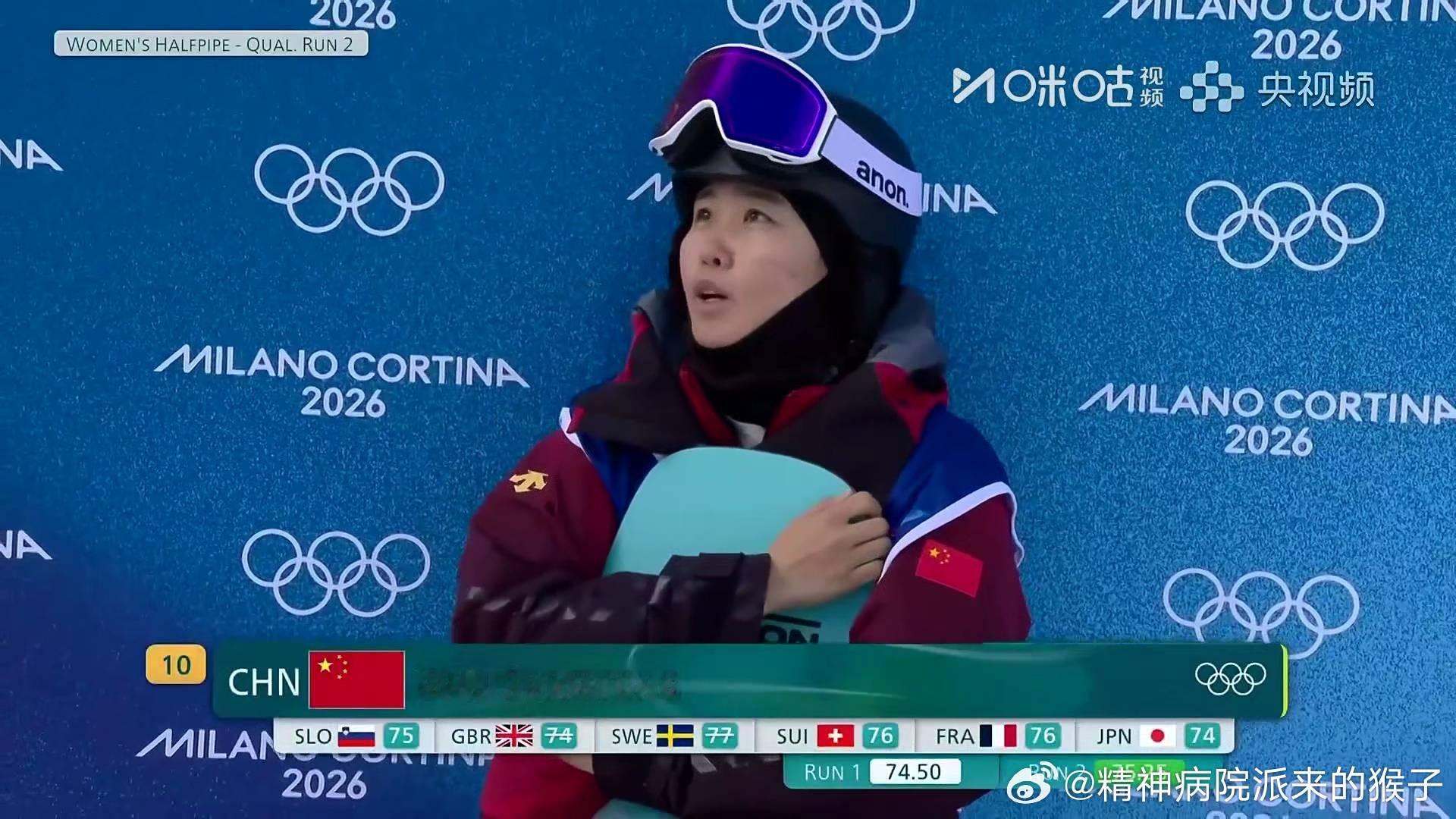 单板滑雪女子U型场地技巧预赛刘佳宇摔倒 2026年米兰冬奥会单板滑雪女子U型场地技巧预赛:蔡雪桐83.00分排名第五晋级决赛武绍桐75.25分卡十二晋级决赛刘佳宇摔倒,排名第十四位无缘决赛,希望没有大碍杨露42.50分,排名第十九位无缘决赛