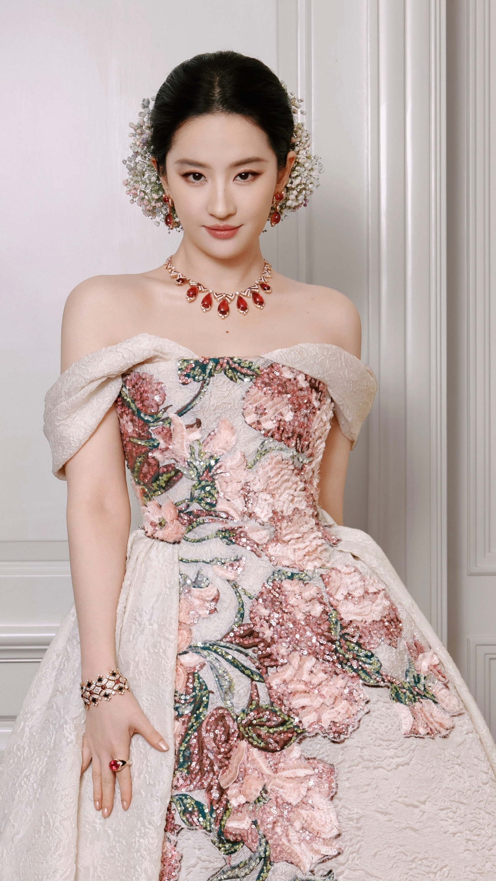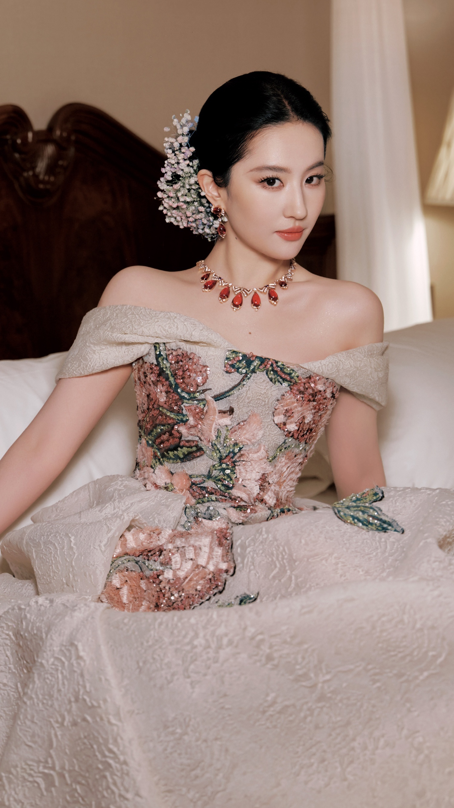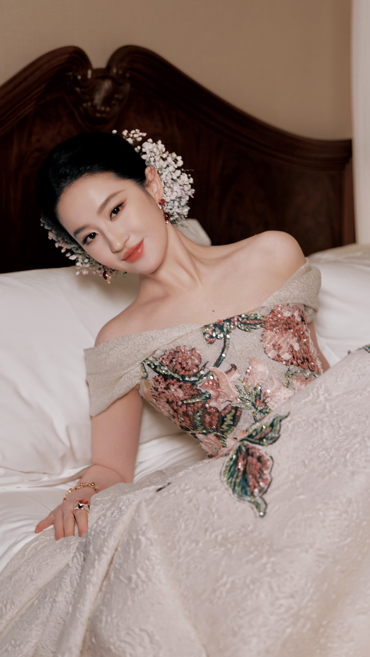 刘亦菲,刺绣花卉礼服,贵气优雅。刘亦菲