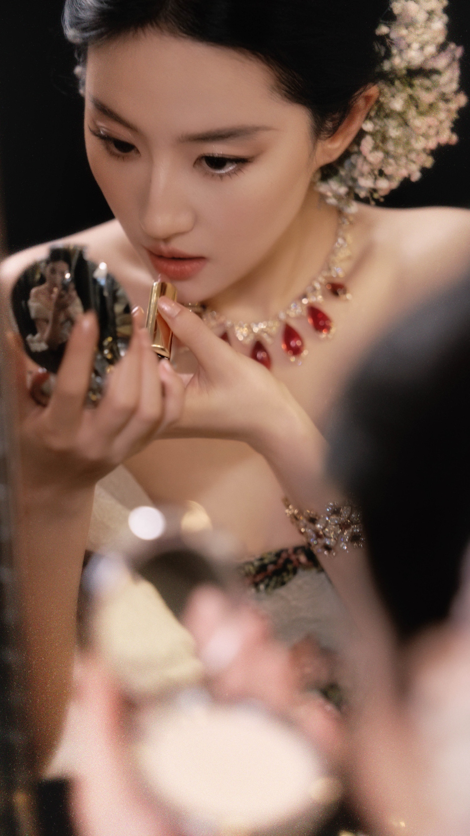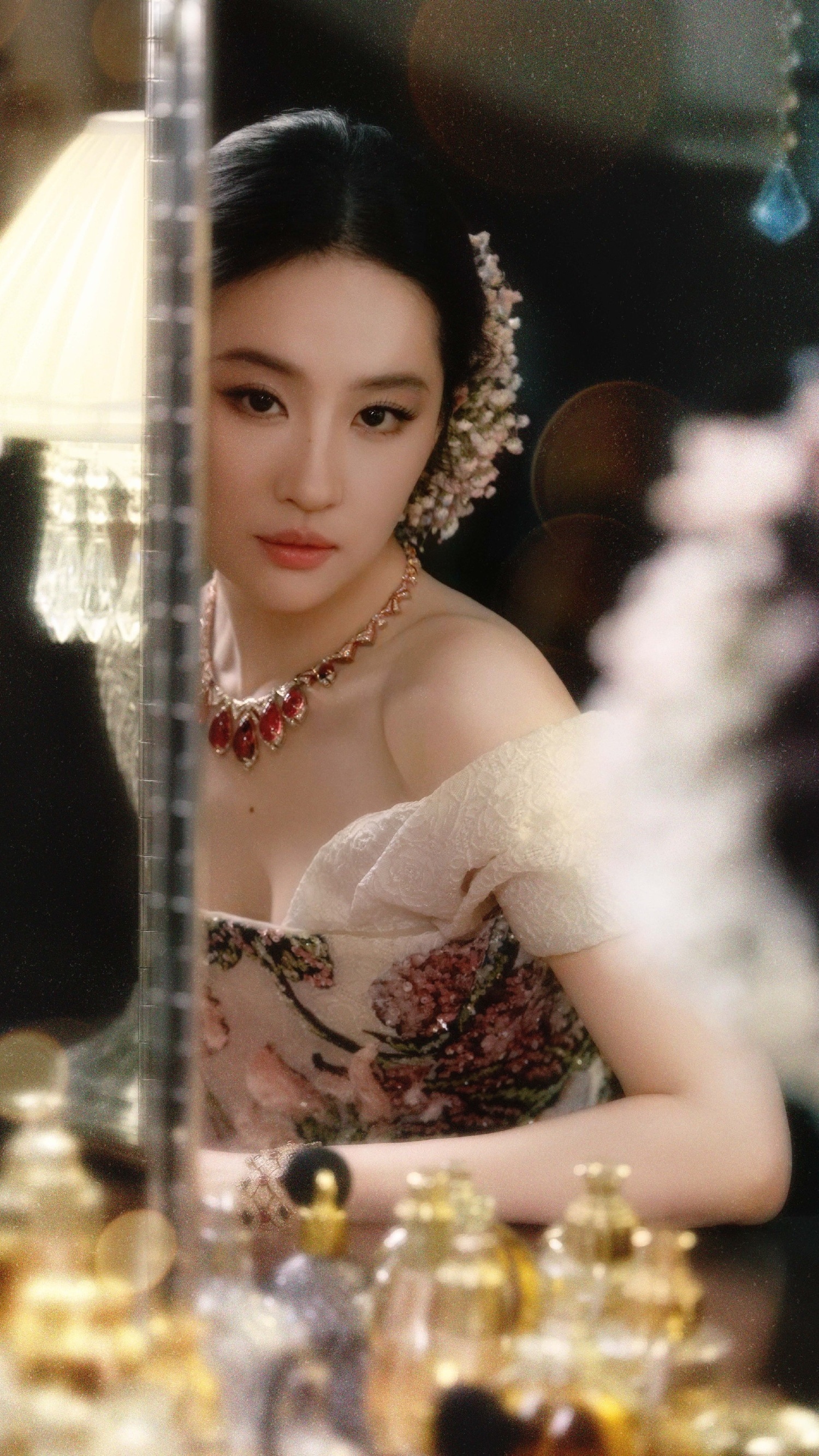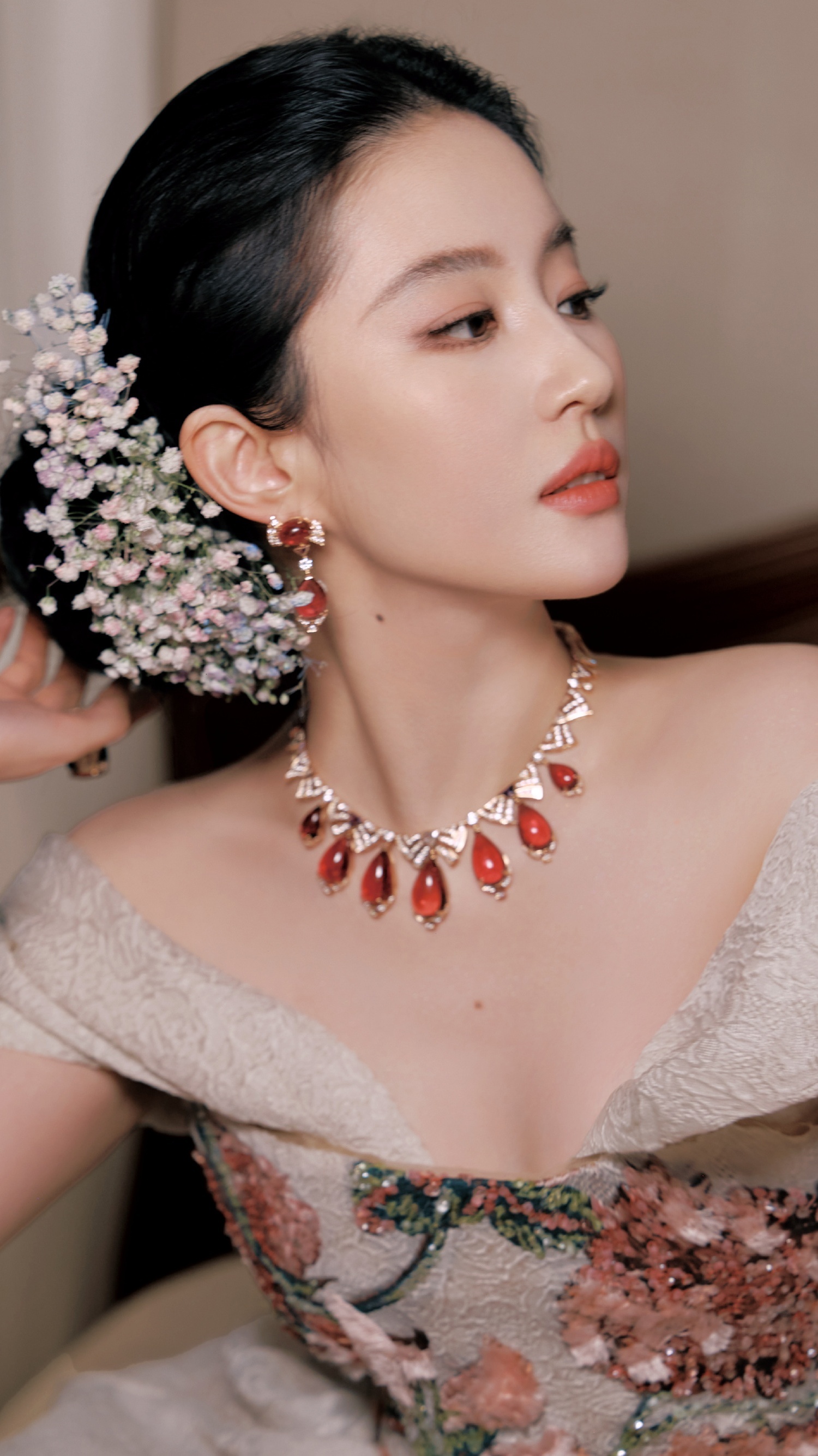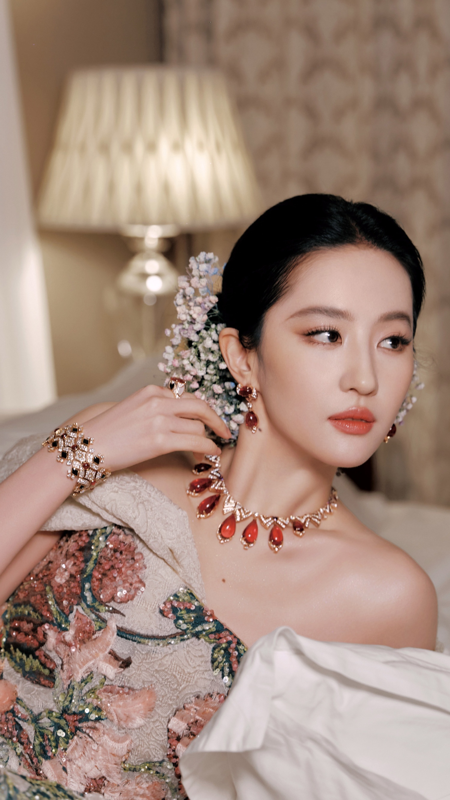 刘亦菲,刺绣花卉礼服,贵气优雅。刘亦菲