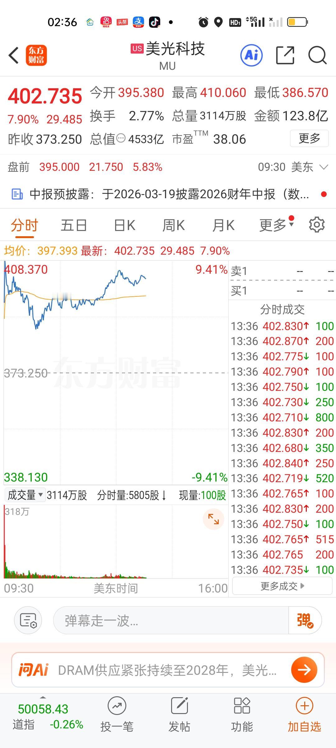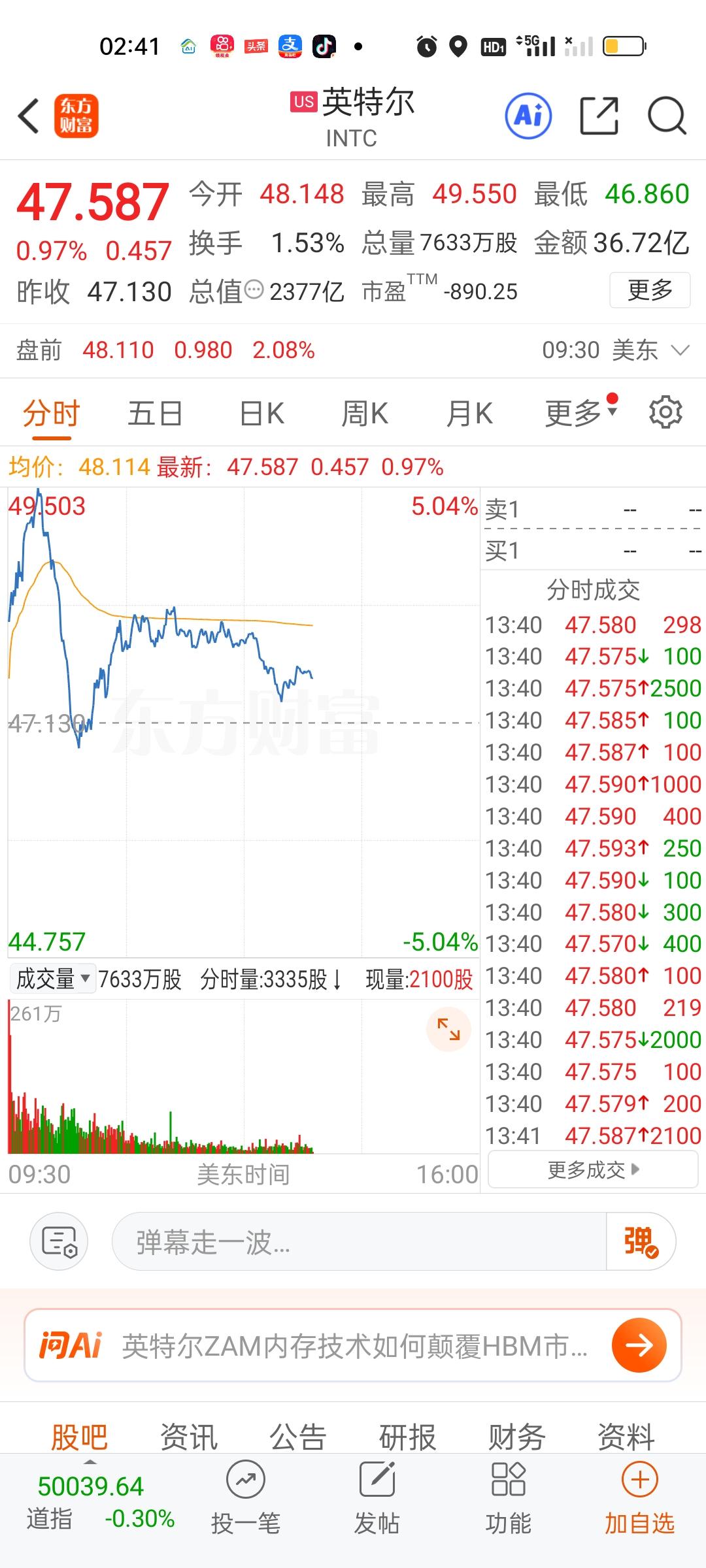 美股存储芯片板块涨幅比较大,但商业航天跌幅也比较大。总体来看,科技股今天表现还是不好。特斯拉,英伟达,英特尔全部都高位跳水了。英伟达如果能上涨会利好我们的CPO板块!