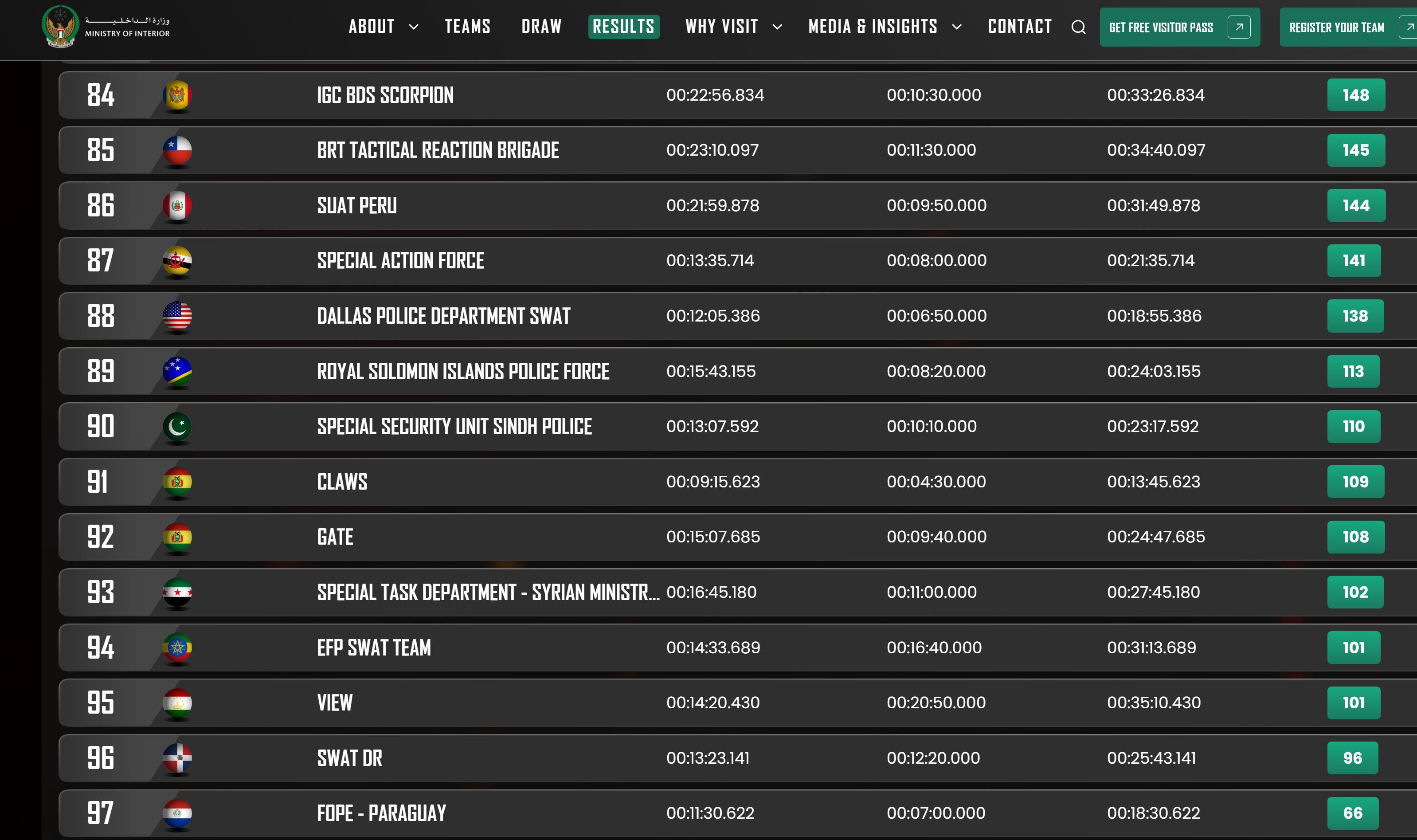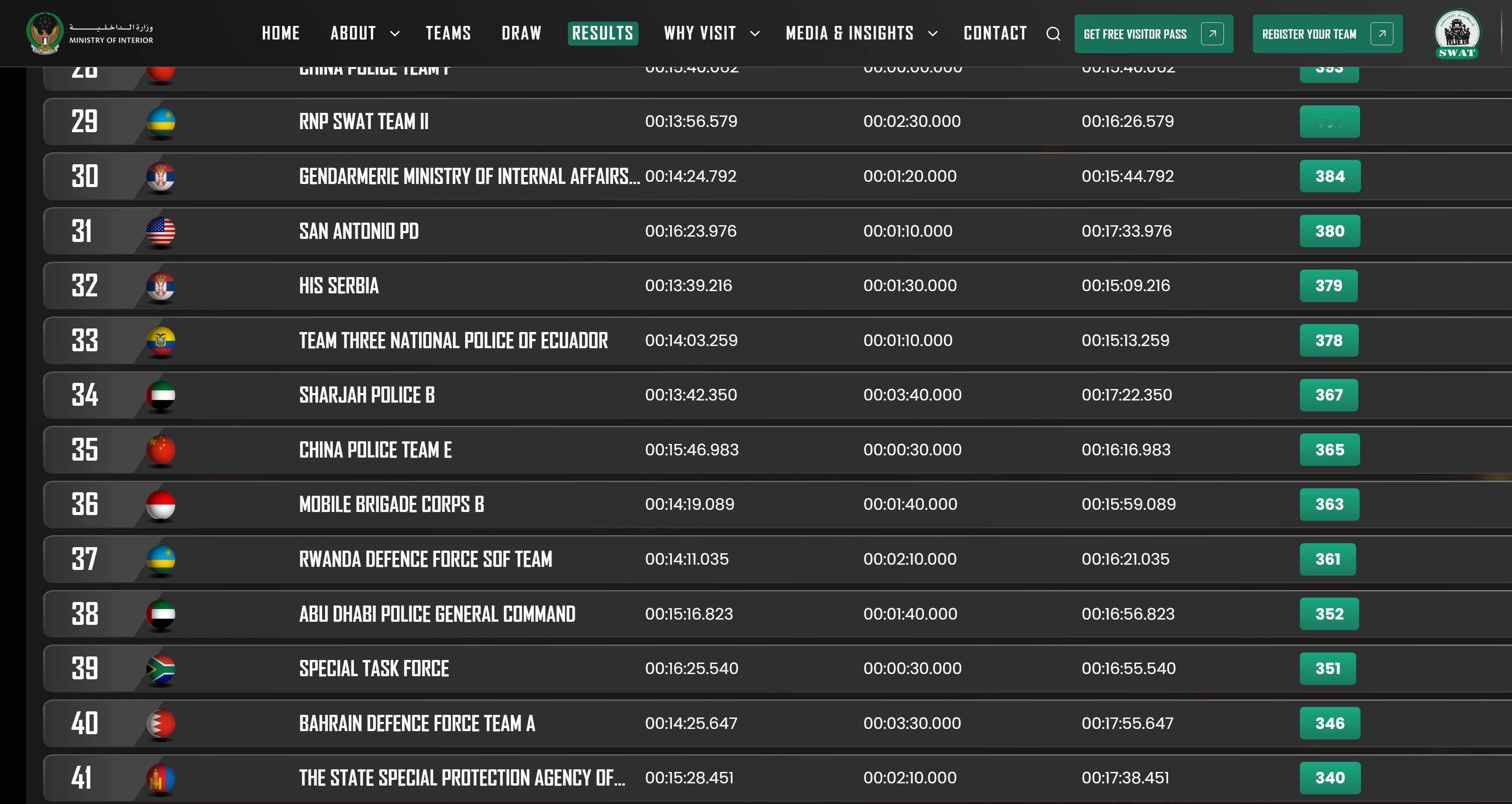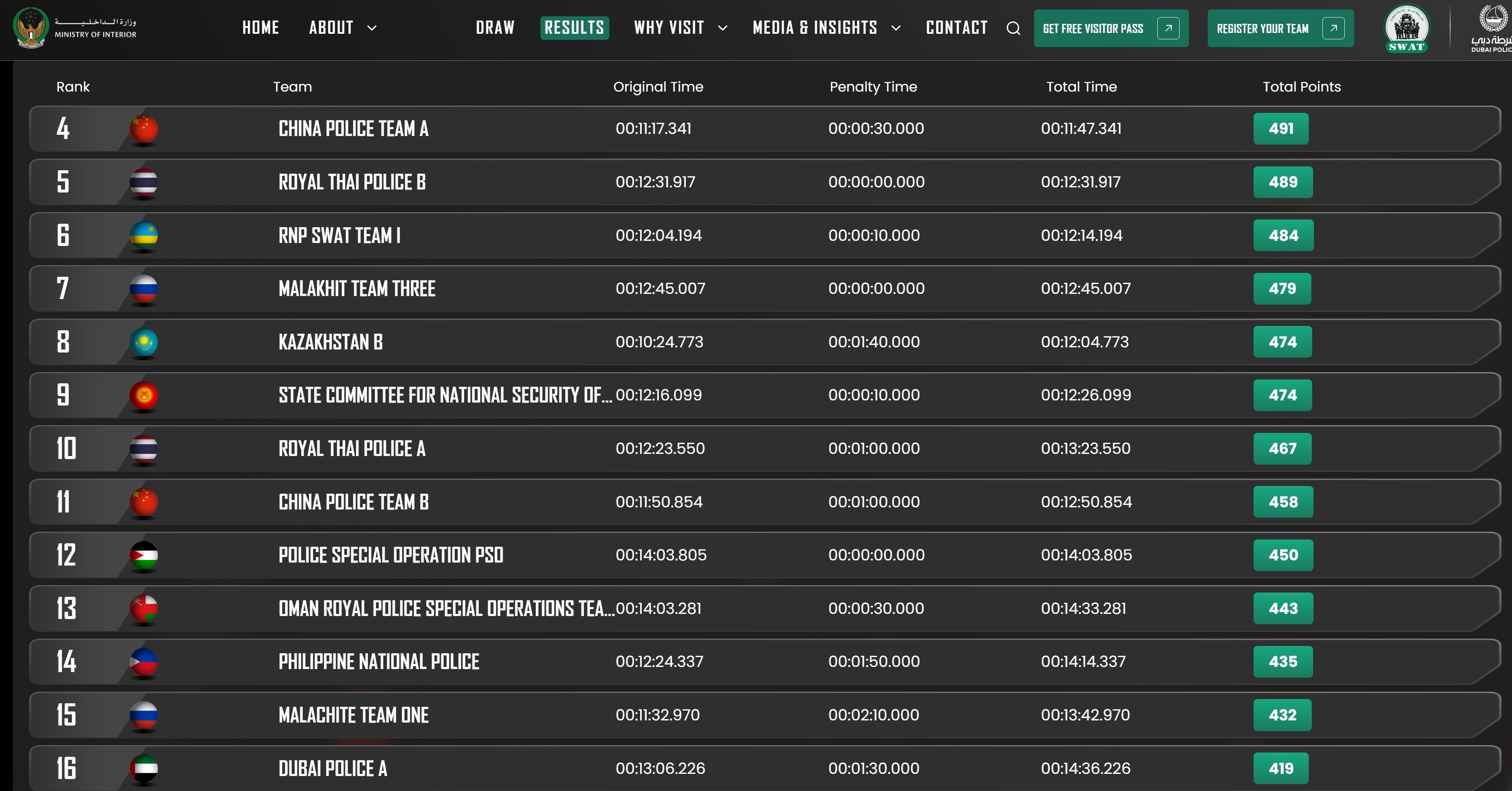 🔻2026年阿联酋特警挑战赛最终排名:🔻中国 C 队(江苏):总分第三🔻中国 A 队(特勤):总分第四🔻中国 B 队(浙江):总分第十一🔻中国 D 队(新疆):总分第十七🔻中国 F 队(四川女队):总分第二十八,女队第二🔻中国 E 队(特勤女队):总分第三十五,女队第三中国特警vs美国特警热点现场海外新鲜事
