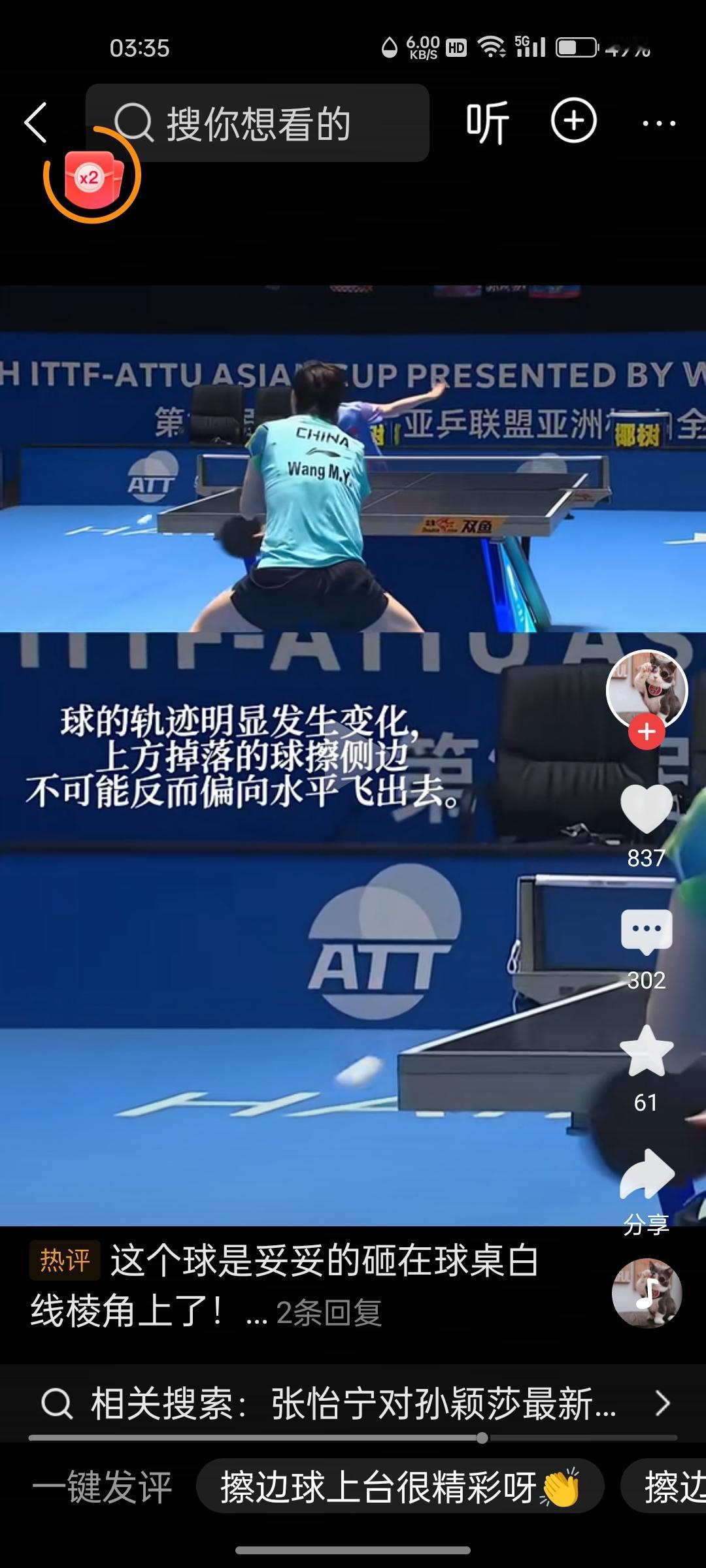 不大喜欢王曼昱!打个球到了关键时刻实在令人生气,呕得人实在实在想喷血!! 王曼昱太实诚了,打个球太一根筋了,明明意识到别人拖你,熬你,就是不积极主动变线进攻,而让人牵着鼻子扯进决胜局,本来中午和张本美和对拼,伤了元气!到了晚上,又是高强度的七局,身体能支撑得了么!不败才怪哩!