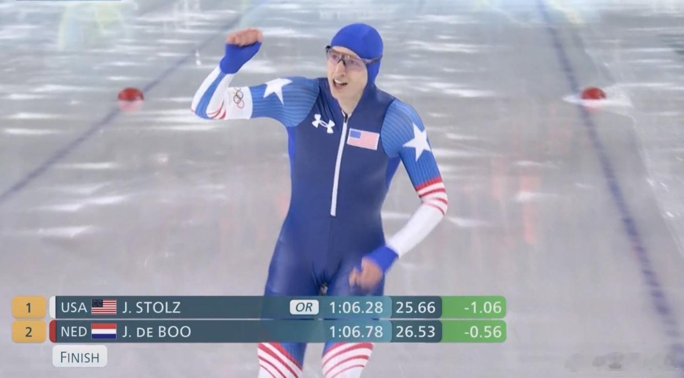 但斯托尔兹还不敢庆祝胜利,因为还有重赛的荷兰选手维内马尔斯。当荷兰人给出1分08秒46的成绩后,年仅21岁零9个月的斯托尔兹获得他个人首个奥运冠军!