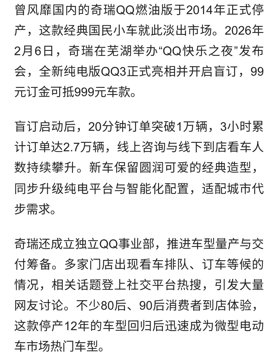 奇瑞QQ友友们还记得吗?停产12年后复产了,大家希望是油车还是电车[大...
