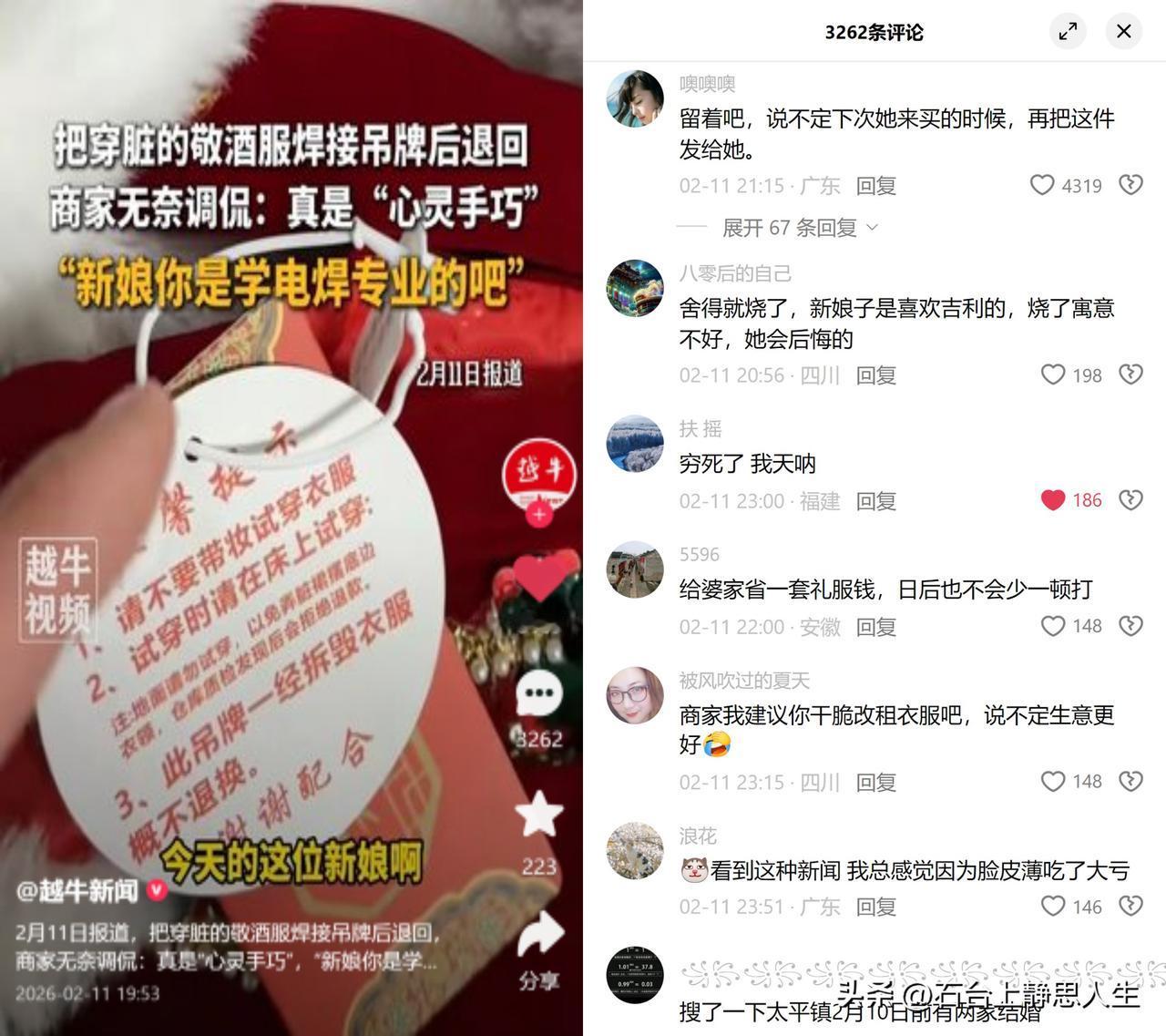 穿脏敬酒服,女子焊接吊牌退货! 有个网购敬酒服的女子,把衣服穿得沾满酒渍粉底,剪了吊牌居然用电焊焊回去,假装全新的申请七天无理由退货,结果被商家当场识破。 这操作我直接看傻!合着七天无理由在某些人这儿,是免费蹭穿的万能通行证? 现在礼服类电商有多难你们知道吗?为了防恶意退货,搞巨型吊牌、超长防盗绳,甚至标着拆吊牌不退,结果还是能遇上这种专业级薅羊毛的! 规则里明明白白写着:吊牌人为修复、衣服污损都不算商品完好,根本不符合退货标准。可偏偏有人把聪明全用在歪路上,把商家的信任、规则的公信力踩得稀碎! 更糟的是,这种人多了,最后倒霉的还是正经消费者,说不定以后商家得把吊牌焊死,我们连正常试穿都受影响! 真心希望平台能给商家撑撑腰,不然好好的规矩,迟早被这些钻空子的人玩坏!
