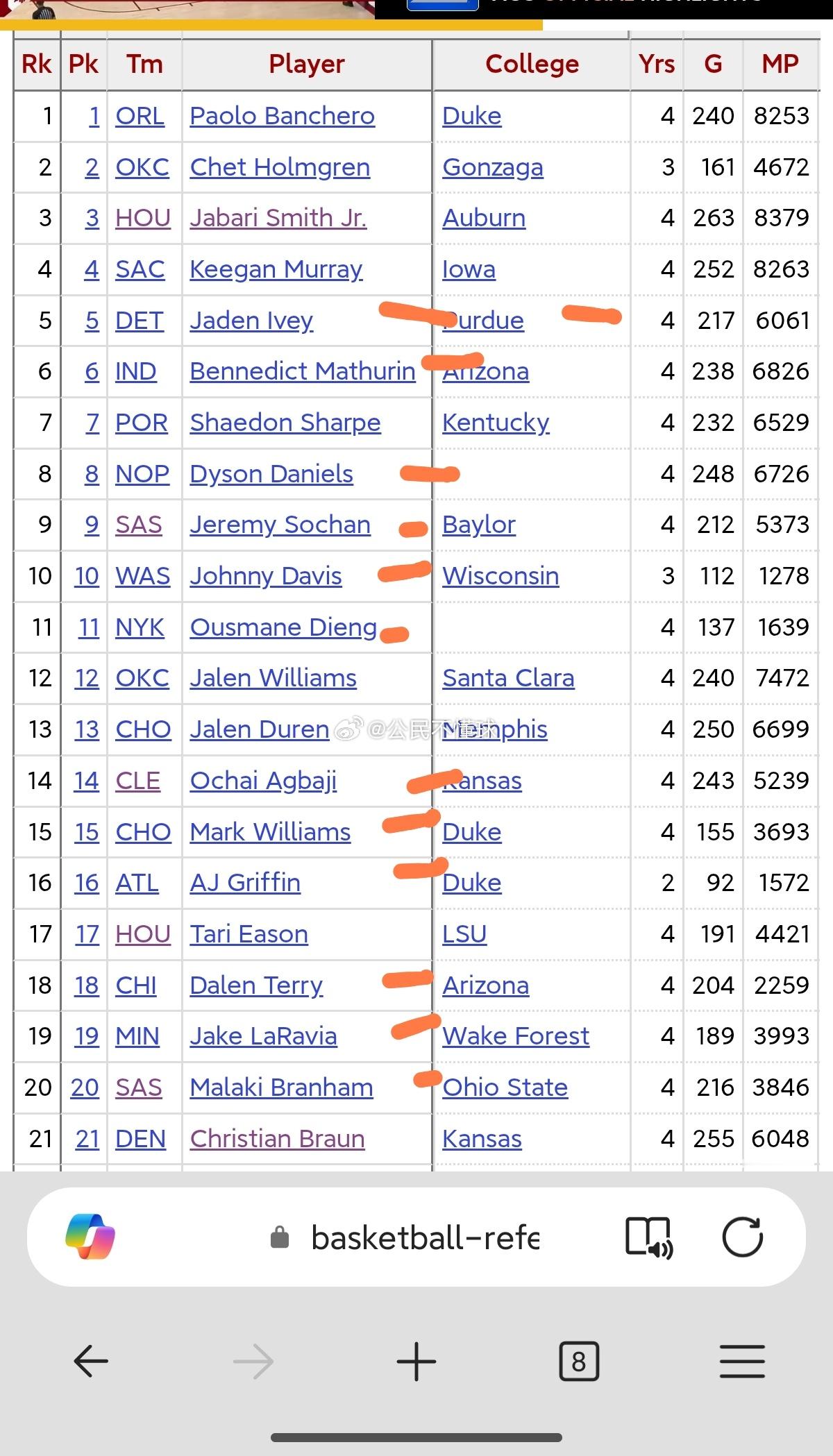 22年新秀也挺惨的,被主队抛弃的已经一半了。当时火箭选史密斯肯定没毛病。后面这些人,当时跟本就没一个可能进前三…杰威12顺位已经算跳选了,最初他只是首轮下半段行情,甚至进不了乐透。