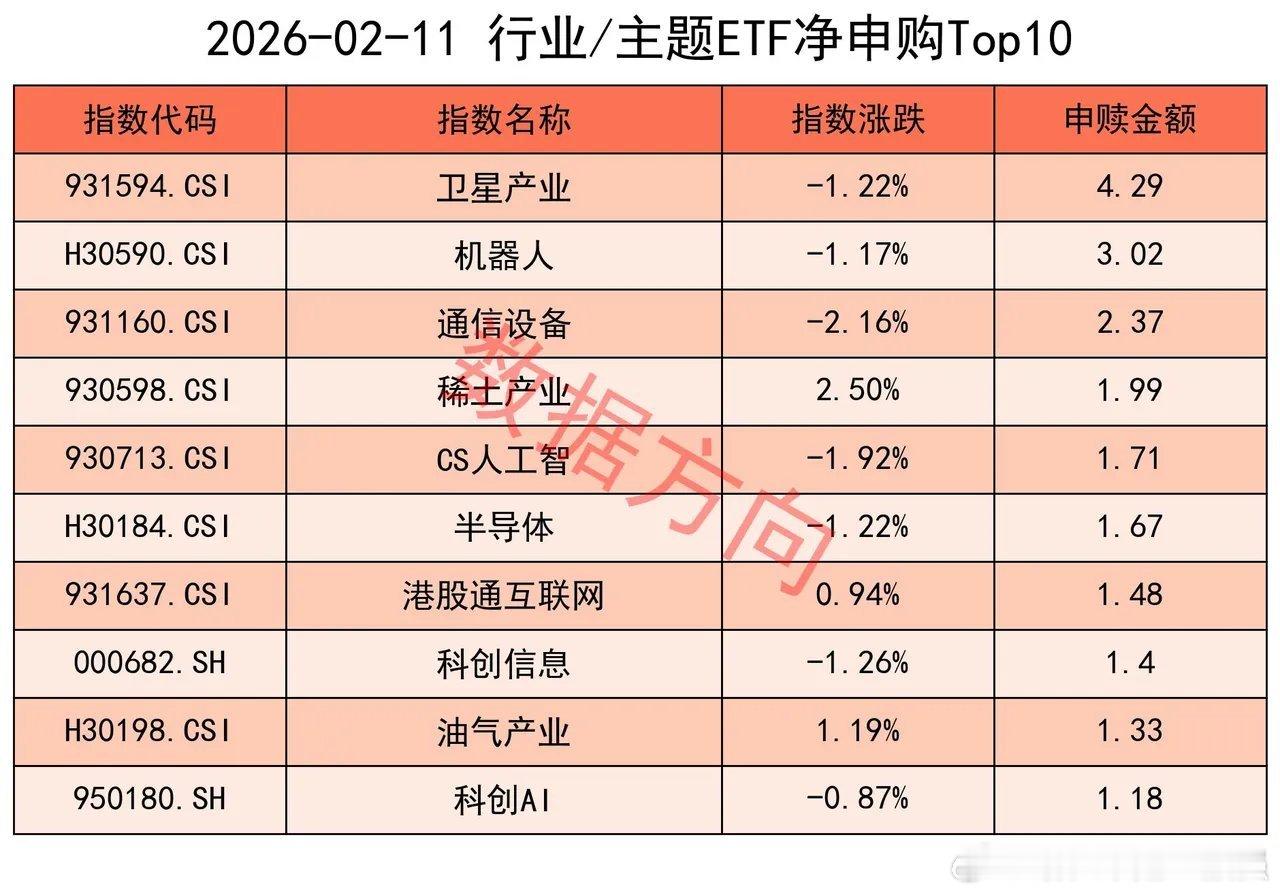 卫星产业指数(4.29亿)、机器人指数(3.02亿)、通信设备指数(2.37亿)、CS人工智指数(1.71亿)、半导体指数(1.67亿)、港股通icon互联网指数(1.48亿)、科创信息指数(1.4亿)、科创AI指数(1.18亿),科技方向普跌为主,集体进入申购icon榜。