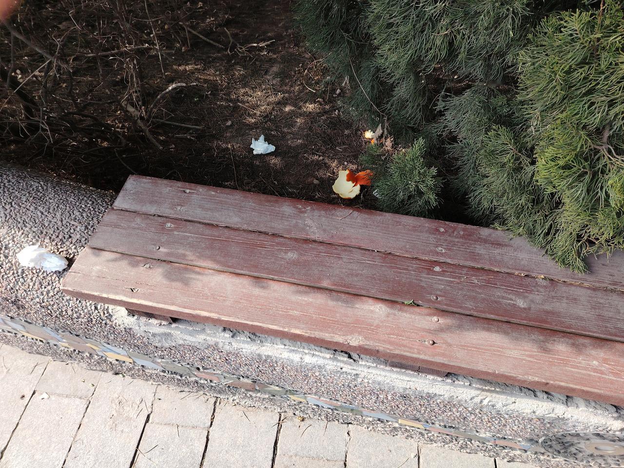 游客坐凳后方有垃圾,能否立刻清扫? 今天下午,60后保洁员老吴在保洁的山路上捡拾垃圾,发现两个游客坐凳后面有橘子皮和卫生纸。那两名游客是一男一女,在座椅上挨得很近,像是夫妻或者恋人。 老吴本想上前说声“对不起”,让他们起身,然后马上清扫后面的橘子皮和卫生纸。可他转念一想,这样做不妥。保洁经理常强调,不能和游客发生冲突。老吴怕打扰到他们,更怕起冲突。但要是不马上打扫,又怕主管巡查时发现,批评他没看到座椅背后的白色垃圾。老吴盼着他们离开,可两人丝毫没有要走的迹象。 老吴便转到其他地方打扫,过一会儿又回来查看他们是否离开,若走了就及时清扫。然而,他们稳坐在凳子上,毫无离去之意,老吴只好又去别处。老吴明白在别人面前晃来晃去、不停徘徊是不尊重人的表现,于是干脆跑到山下卫生间,一边解决个人问题,一边等他们离开。从卫生间出来,他看到那两人终于走了,赶忙清扫了座椅背后的橘子皮和纸屑。 无论做何事都不打扰他人,这是一种善良,更是一种操守。 下面几张图,把坐凳背后的白色垃圾拍清楚了,没拍到坐在凳子上的人,也不能拍,因为老吴觉得要尊重他们。