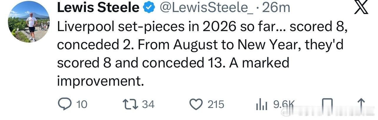 2026年之后,我军通过定位球打进8球丢了2个。但从去年8月到12月底我军通过定