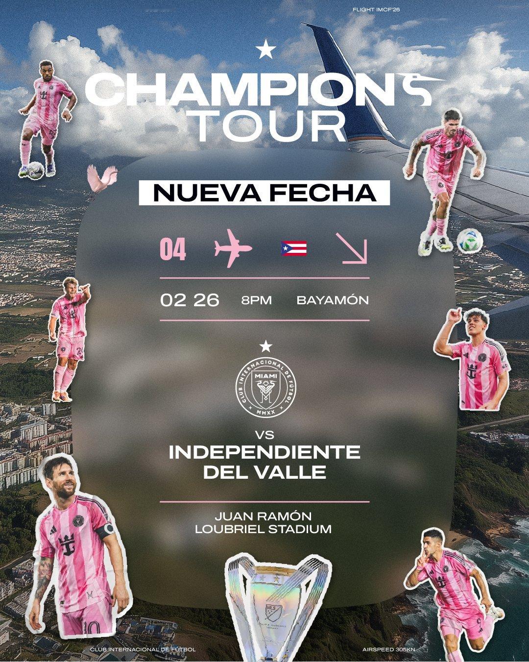 2026年冠军巡回赛的最后一场比赛将推迟到2月26日举行。俱乐部与赛事主办方及波多黎各政府合作,认为调整比赛日期将为波多黎各的球迷提供最佳体验。比赛仍将在波多黎各巴亚蒙的胡安·拉蒙·卢布里尔体育场进行,对手仍然是独立德尔瓦列队。