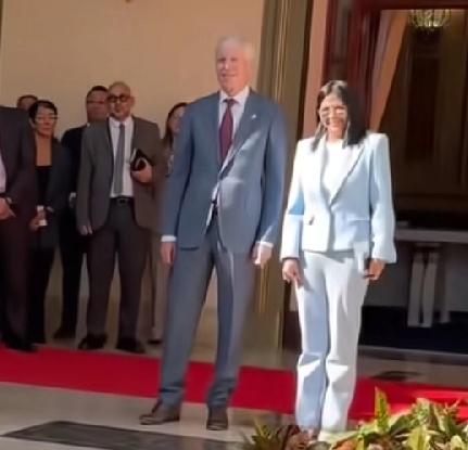 委内瑞拉女总统,敲锣打鼓欢迎美国特使,阳光明媚,笑的开心,礼乐队帅哥靓妹,一片祥和气氛,一切都很正常,至于马杜罗被抓,仿佛什么事都没发生过!应了杜甫那句诗句:国破山河在,人去鸟不惊!这就是现实、政治、国际政治!特使来了都这待遇,如果特朗普来了,女总统还不得跪迎,锣鼓喧天、鞭炮齐鸣!