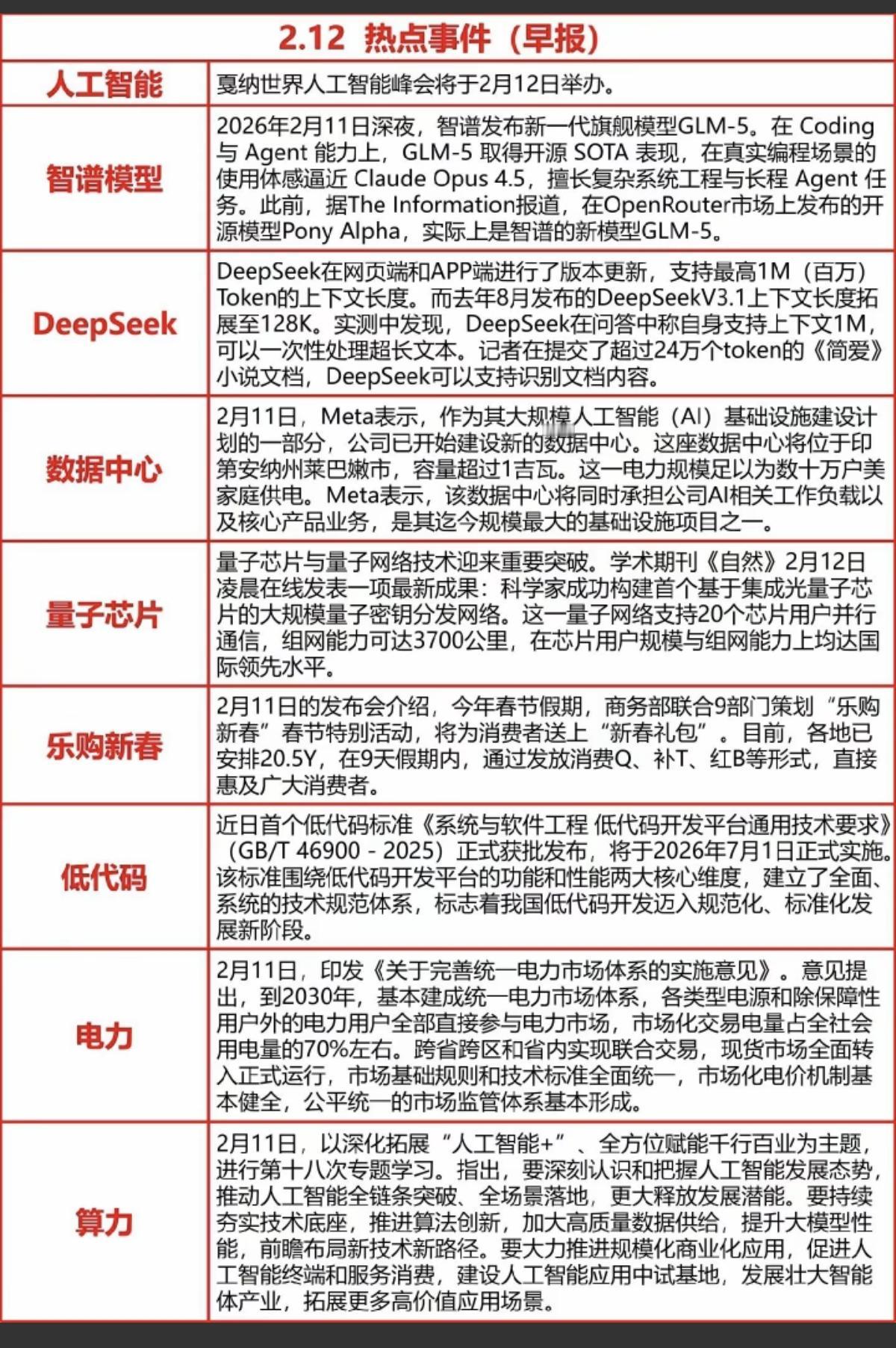 2.12周四 财经热点 事件汇总! 1.智谱AI模型 2.Deepseek新模型 3.数据中心 4.量子芯片 5.电力+算力