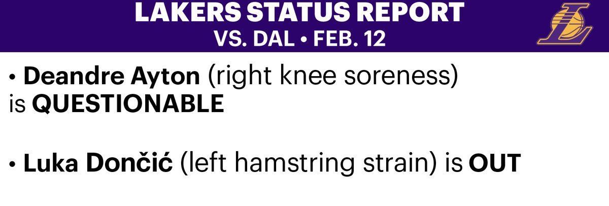 东契奇缺席与独行侠的比赛,艾顿出战成疑。 独行侠vs湖人