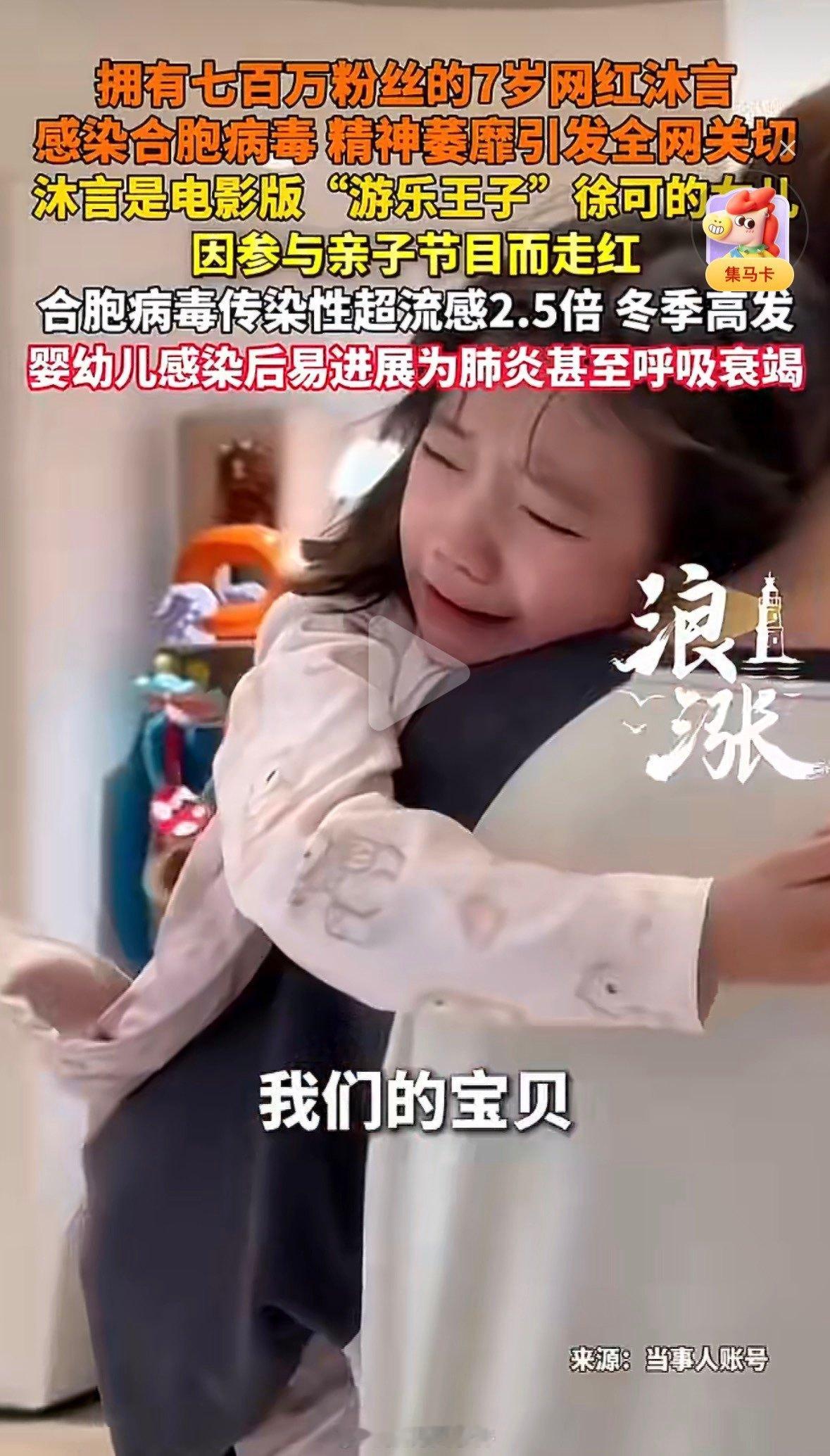 游乐王子的女儿感染合胞病毒7岁网红沐言感染合胞病毒,这病毒传染性比流感高2.5倍,还没特效药,孩子蔫蔫的太让人心疼,当家长的都懂这种感受