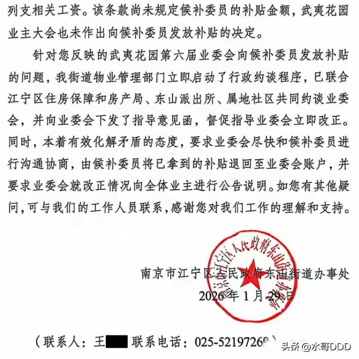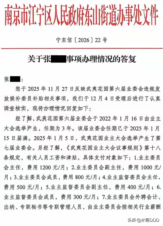 南京业委会“发钱”被查:5万补贴背后的基层治理困局 · 小区门口梧桐叶又落了一层,张大妈拎着菜篮路过公示栏,瞧见盖红章的公告,停下眯眼细看许久。她不懂“越权发放”,只知物业费里的钱进了不该进的人腰包。这样的场景,在中国无数的小区已悄然上演。 一、公告揭开小区“家丑” 2026年2月8日,南京江宁区武夷花园小区一份自查公告,如石投静湖。公告写明:第六届业委会违规给两名候补委员发津贴5.2万元,决定全额追回。 这笔钱发得蹊跷。《武夷花园业主大会议事规则》规定了主任、副主任和普通委员补贴标准,却没提候补委员该拿多少。没规矩就发钱,这是没把业主放在眼里当回事。 补贴的发放理由是“工作较忙,聘用候补委员直接参加工作”更耐人寻味。“工作较忙”就能绕过业主大会、自创薪酬标准?若此逻辑成立,所有违规都可以有借口。 二、退款呈现“众生相” 公告里的退款名单,是部微缩的“人性浮世绘”。 两名候补委员痛快退回2.6万元,承担50%费用。这态度值得肯定,但当初拿钱时难道不知钱不正? 9名正式委员表现各异。6人乖乖掏钱,每人2890元;1人口头答应却未缴款;2人直接拒绝。这场景像村里分征地款扯皮,只是披上“城市社区治理”外衣。 两名拒缴委员称“都是业主选出来的,凭什么让我们背锅”,实则偷换概念。业委会是整体,决策时赞成,出事就甩手,哪有这好事? 三、街道办约谈意味深长 事件曝光后,东山街道办反应迅速有力,联合多部门共同约谈。这表明基层政府意识到业委会违规不是“小区内部事务”,而是关乎基层治理稳定的公共事件。5.2万元事小,规则被践踏、业主权益被漠视的事大。 但约谈后,拒缴款委员谁来管?违规决策程序谁来追责?若仅“钱退回来就完事”,这样的处理属于隔靴搔痒,类似剧本今后可能会不断重演。 四、候补委员制度存“灰色地带” 武夷花园案撕开了业委会制度被忽视的角落:候补委员身份尴尬。他们非正式委员,忙时被拉来干活;无表决权,却干着和正式委员一样的活;规则没定补贴,却付出劳动,像单位的“临时工”。 问题根源是制度设计粗糙。多数小区《议事规则》对候补委员权利义务语焉不详,让现任业委会可按需操作,用人朝前、不用人朝后,把人当成工具。 五、全国业委会“权力任性”待解 武夷花园不是个例。近年来,业委会违规使用公共收益、擅自发放补贴、侵占维修基金案例屡见不鲜,各城市都有类似“家丑”。 症结有三: 一是监督缺位。业主大会常“沉睡”,业主无暇顾及小区事务,让少数人有机可乘。 二是规则模糊。相关法规多为原则条款,小区《议事规则》多照搬模板,漏洞百出。 三是违法成本低。违规多是退钱、道歉,难有实质处罚,无法形成震慑。 六、破局需制度变革 武夷花园事件证明业主监督有效、政府介入有力。但根治业委会“权力任性”,需深层制度变革。 首先,候补委员制度要正名。明确其权利义务,参照正式委员给补贴,或取消这一模糊地带,避免争议。 其次,业委会财务要透明。每笔收支及时公示,接受业主查询,5.2万元能发出,说明财务监管形同虚设。 最后,建立业委会成员信用档案。违规者退钱并记入信用记录,限制参选,断了把业委会当“提款机”者的念想。 武夷花园梧桐叶落尽,春天会再来。但小区治理的“春天”,靠业主觉醒和规定落实。小区是大家的家,不是少数人的“自留地”。