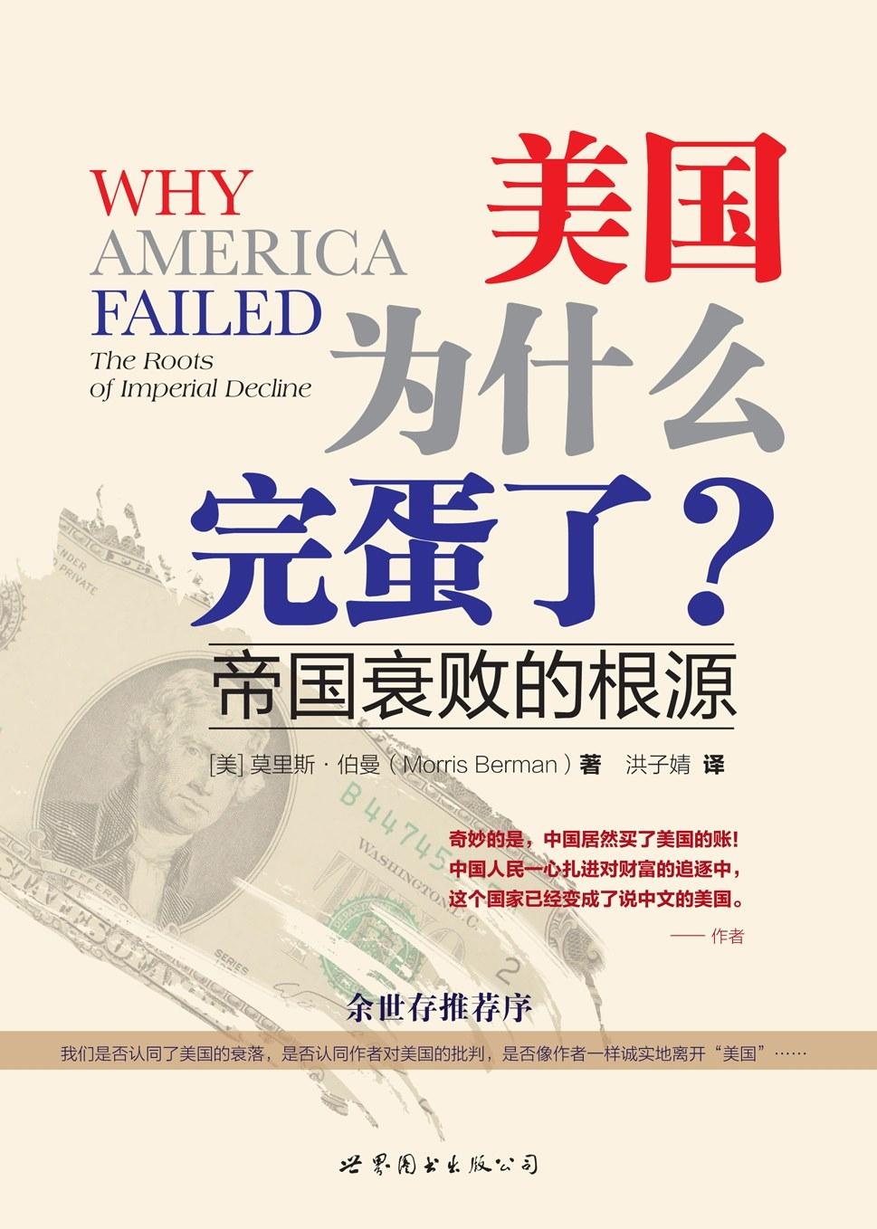 本书作者莫里斯·伯曼,美国文化历史学家、社会批评家。康奈尔大学数学学士、约翰霍普金斯大学科学史博士。曾在美、加、欧多所大学任教,2006年移居墨西哥。 本书2011年在美国出版 2014年在大陆出版。 美国完蛋了吗?[灵光一闪] 这种书能在美国出版, 能说明什么呢?[灵光一闪]